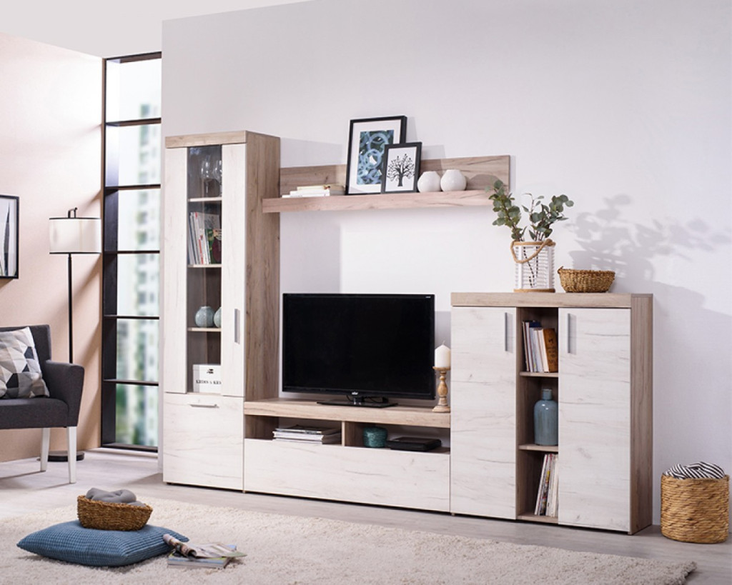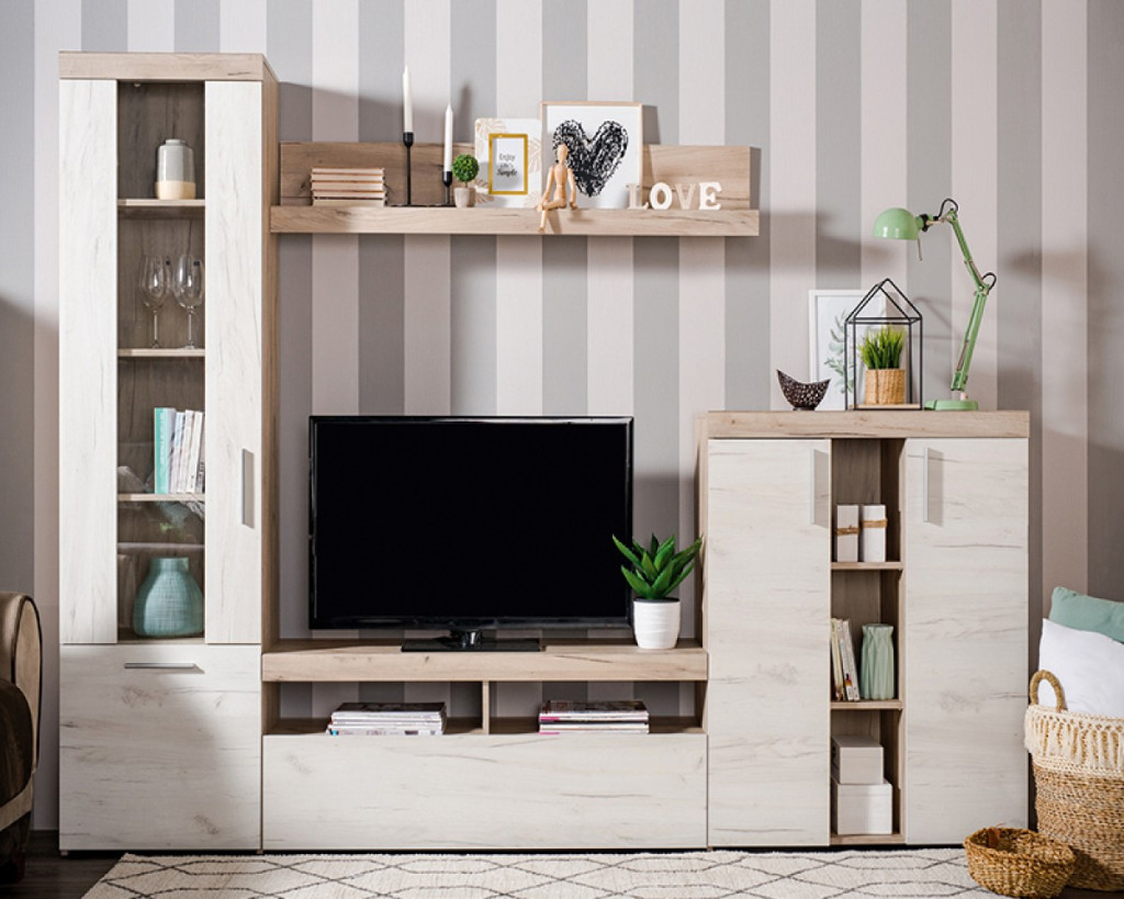 Kompakt nappali összeállítás mely igény esetén akasztós szekrénnyel is kiegészíthető.
