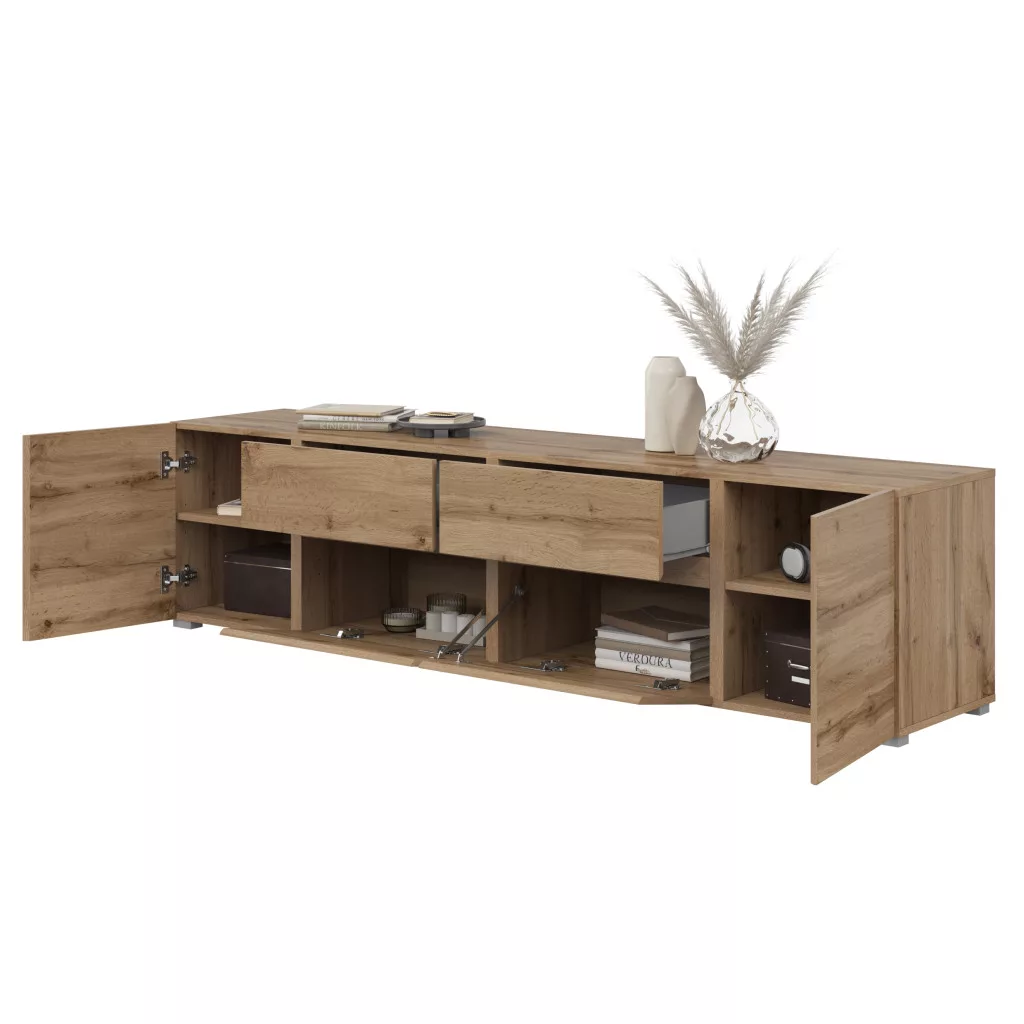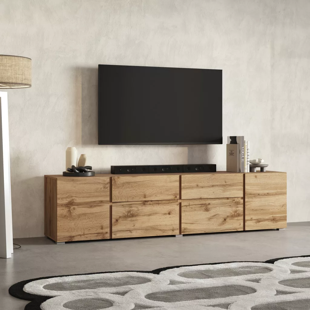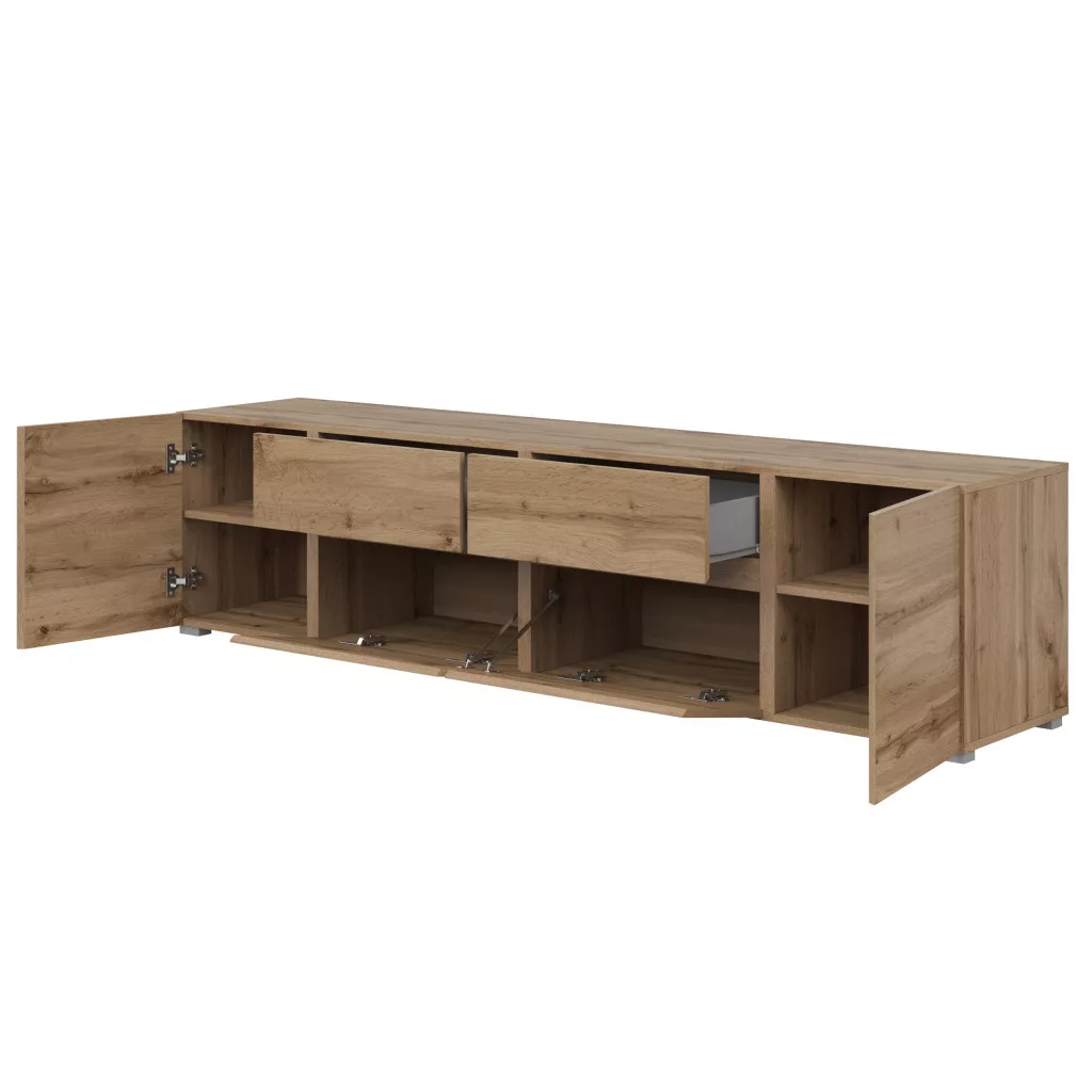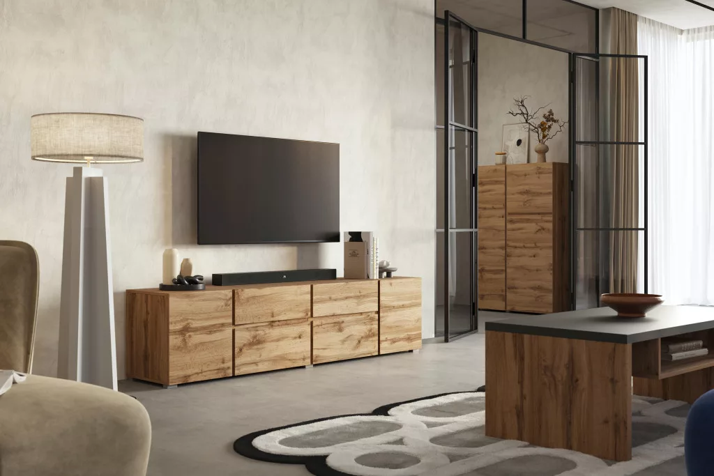 A széles kialakítás ideális nagyobb televíziókhoz is, a zárt szekrényrészek pedig segítenek elrejteni a kábeleket, kiegészítőket, játékkonzolokat vagy egyéb elektronikai eszközöket. Így a nappalid mindig rendezett és letisztult marad.