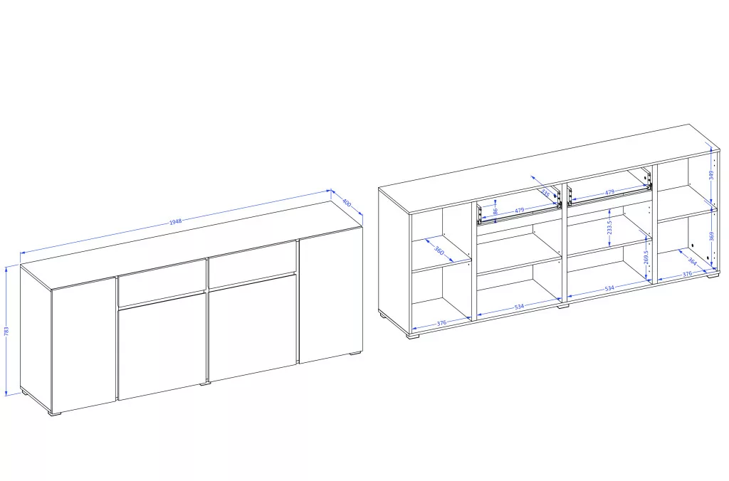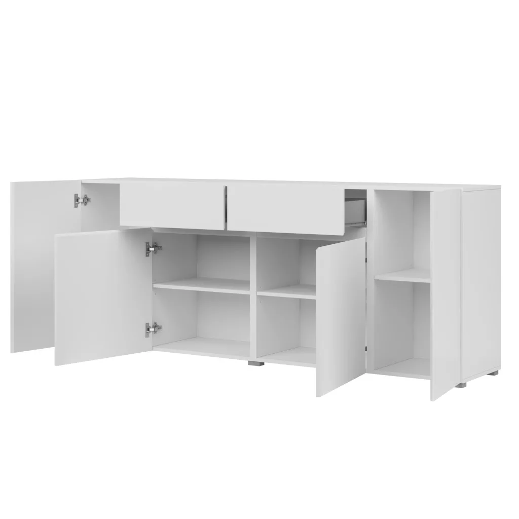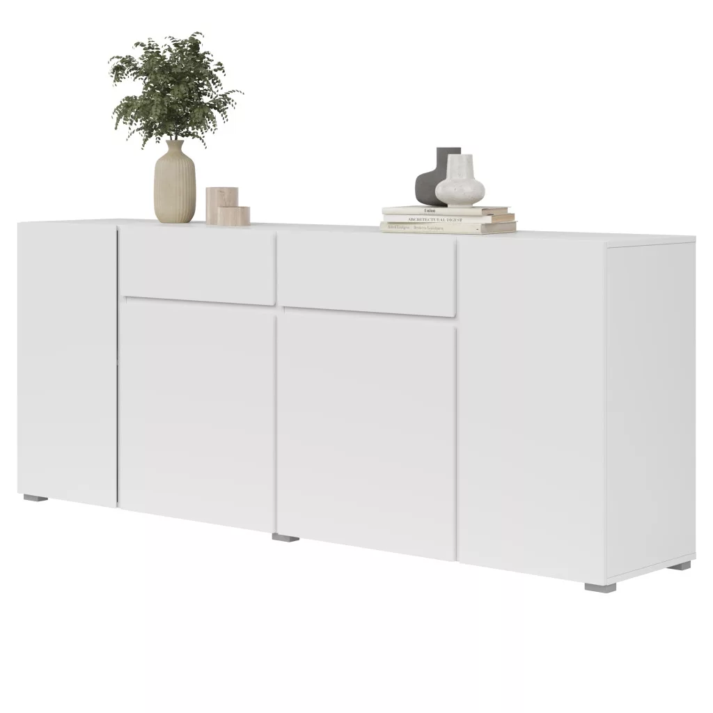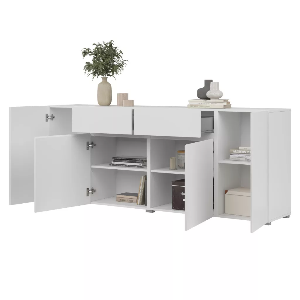 A komód kombinált elrendezésének köszönhetően több különálló tárolórésszel rendelkezik: zárt szekrények és tágas fiókok segítik a rendszerezést, így minden kéznél van, mégis rendezett marad a tér. Ideális ruhák, dokumentumok, háztartási eszközök vagy nappaliban média-kiegészítők tárolására is.