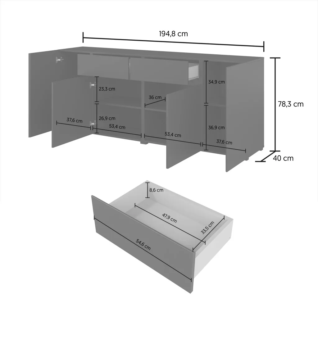 Ez a modern, alacsony kialakítású komód tökéletes választás, ha egyszerre keresel elegáns megjelenést és praktikus tárolóhelyet otthonodba. A fogantyú nélküli, sík frontok és az egységes, minimalista forma letisztult, prémium hatást keltenek, így könnyedén illeszkedik modern, skandináv vagy akár klasszikus enteriőrbe is.