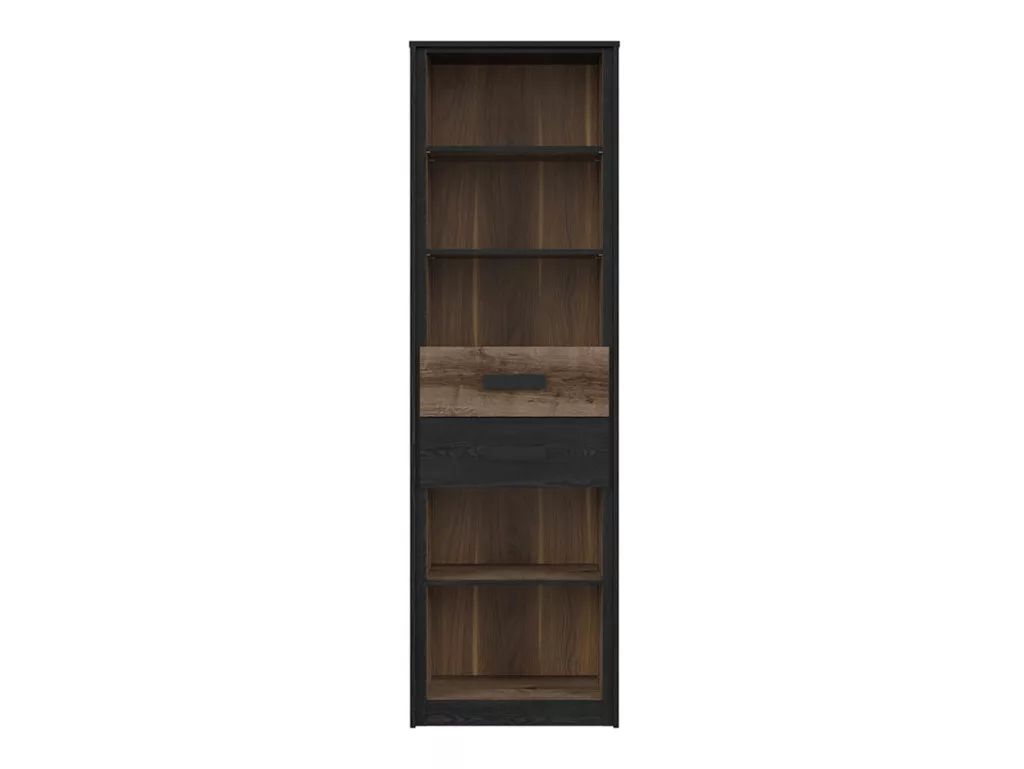 A Kassel kollekció részeként készült ez a 60 cm széles nyitott szekrény, amely kiváló választás kis terekbe vagy kiegészítő bútordarabként. A Monastery tölgy és fekete színkombináció meleg, természetes, ugyanakkor modern hatást kelt, míg a 2 fiók és 5 nyitott polc gondoskodik a praktikus helykihasználásról.