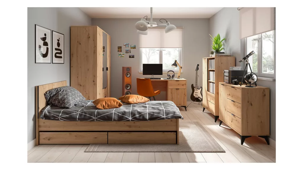 A Lamea könyvespolc a modern dizájnt ötvözi a praktikus megoldásokkal, így szinte bármilyen enteriőrben jól mutat – a nappalitól a hálószobán át a dolgozószobáig vagy akár egy tinédzser szobájáig. A artisan tölgy meleg árnyalata jellegzetes erezetével otthonos hangulatot teremt, míg a díszes lamellák elegáns, enyhén ipari jelleget kölcsönöznek neki.