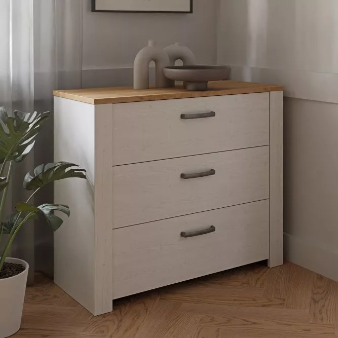 • Fiókos komód, Riviera Oak és Sibiu Light Larch dekorok lenyűgöző kombinációjában.