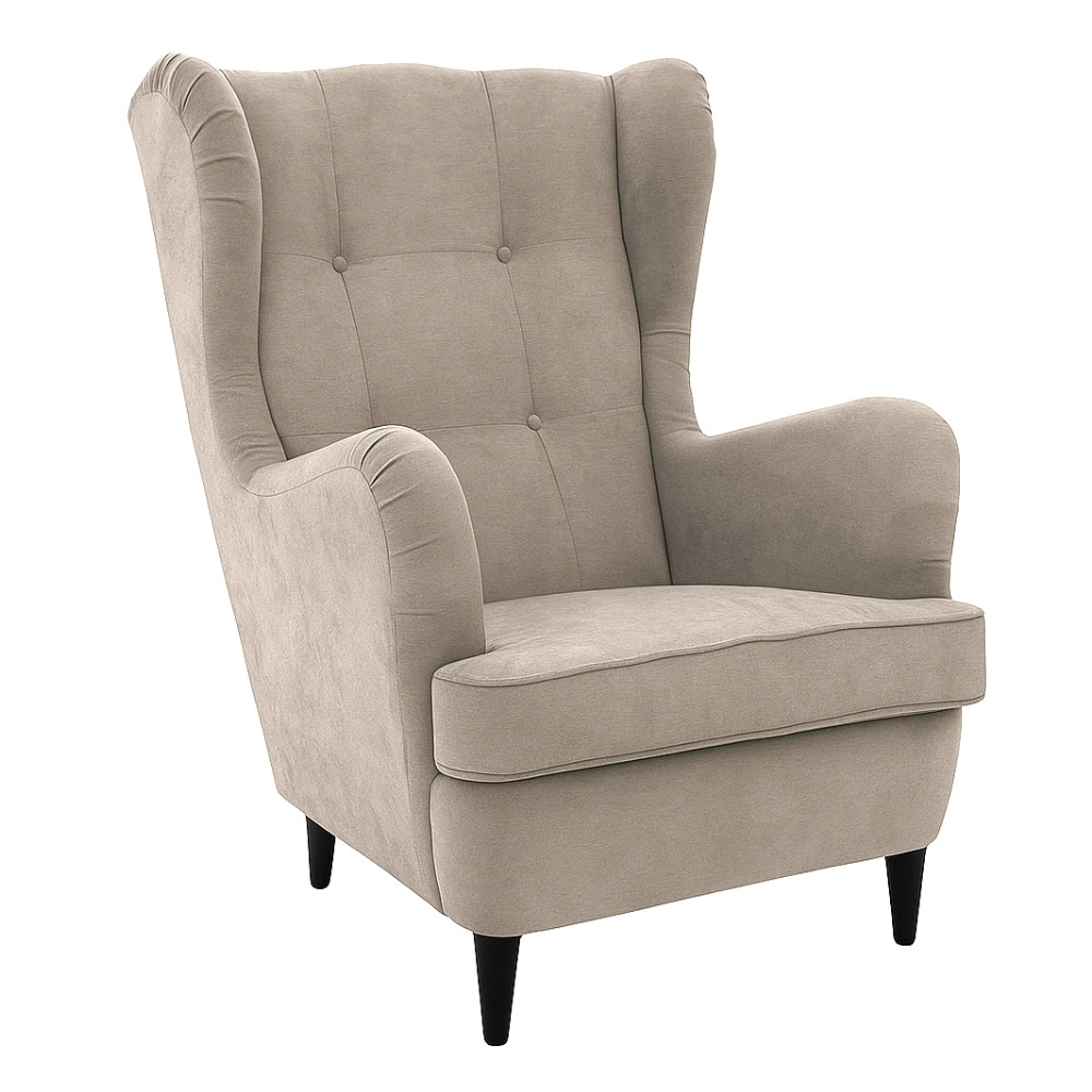 Rendkívül masszív és kényelmes, klasszikus fülesfotel szövetkárpitozással. A pihentető üléskomfortot a hullámrugók és az azon lévő habanyag biztosítja. Pácolt tömörfa lábakon áll.