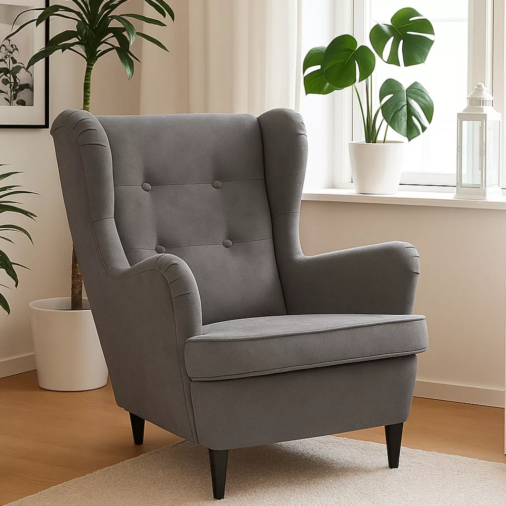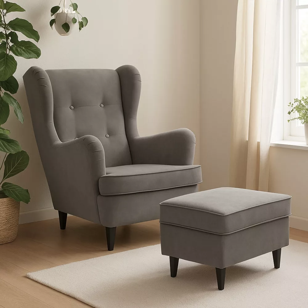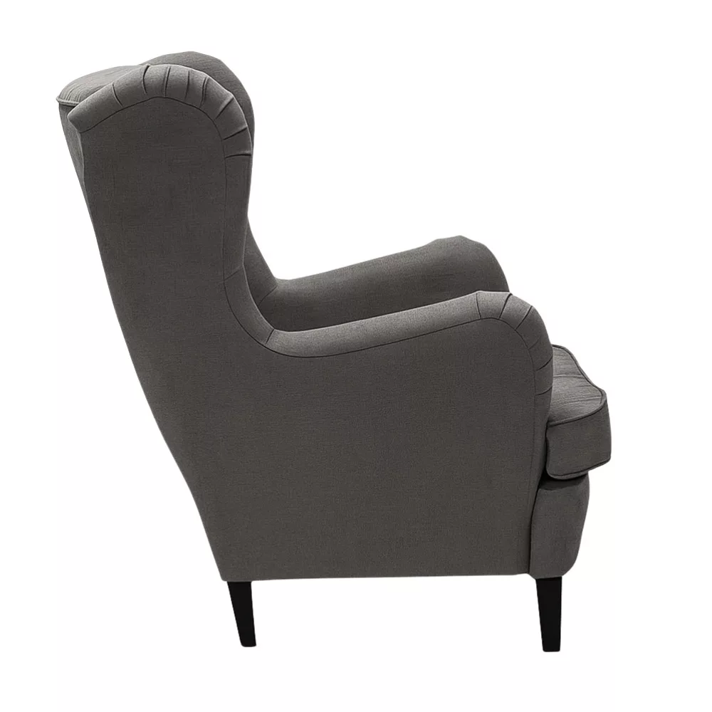 Rendkívül masszív és kényelmes, klasszikus fülesfotel szövetkárpitozással. A pihentető üléskomfortot a hullámrugók és az azon lévő habanyag biztosítja. Pácolt tömörfa lábakon áll.