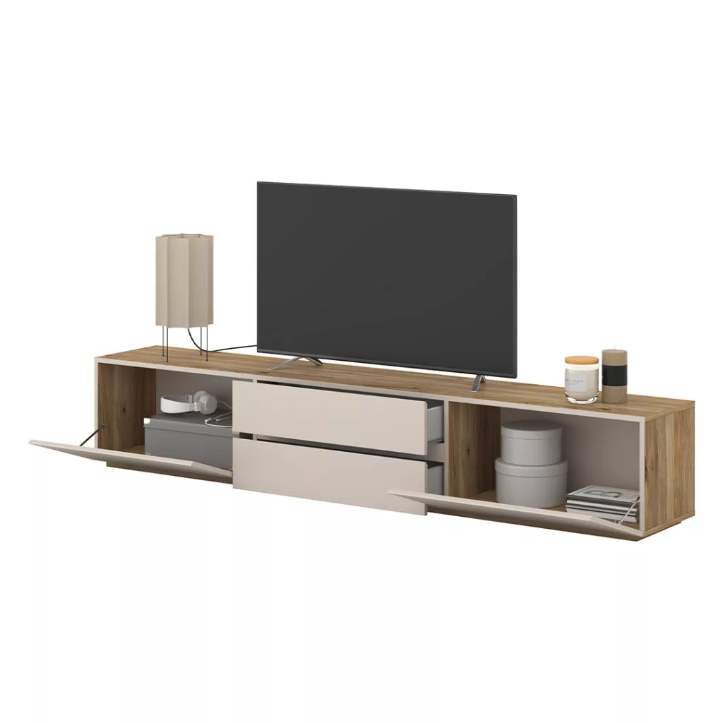 Modern TV állvány – mauvella tölgy / kasmír színkombinációban (200 cm)