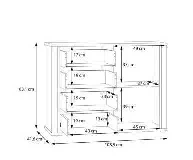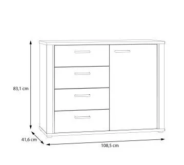• Egy 108,5 cm széles x 83 cm magas x 41,6 cm mély bútordarab számos tárolási lehetőséggel