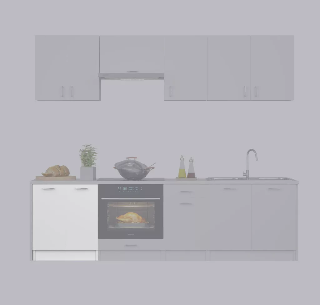 Eco 240 konyhablokkhoz tartozó 60 cm-es alsó elem, melyet munkalap nélkül szállítunk.