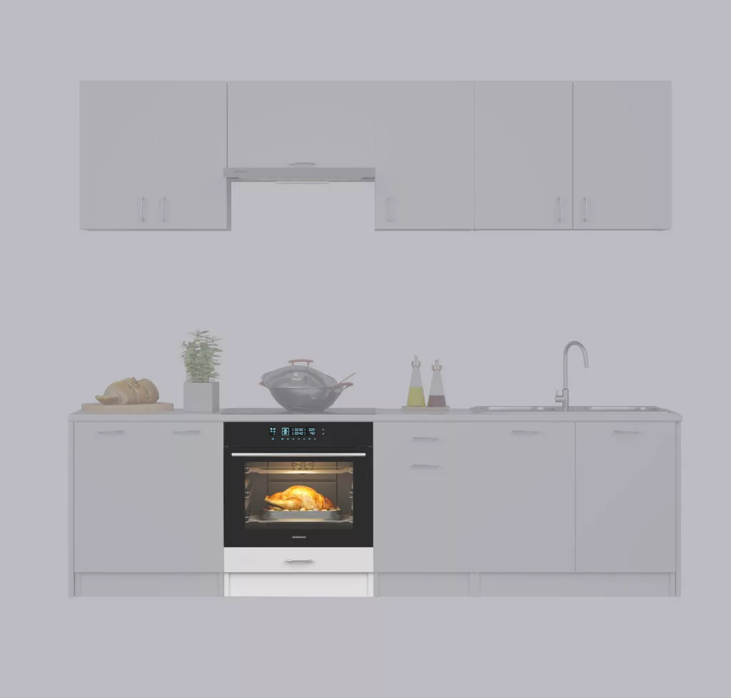 Beépíthető sütős elem Eco 240 konyhablokkhoz, fehér színben, csak a készlet erejéig.
