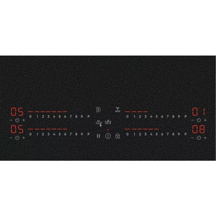 Vezérlés funkciók: 3 lépéses maradékhő kijelzés, hangjelzés, Booster, gyerekzár, eco timer, energiagazdálkodás, Heat memory, Elszívó vezérlés főzőlapról, Individual zone timers, billentyűzár (key-lock), Baloldali "Bridge" funkció, percszámláló, Szünet, SenseCook Boil, SenseCook Fry sütés, hang ki
