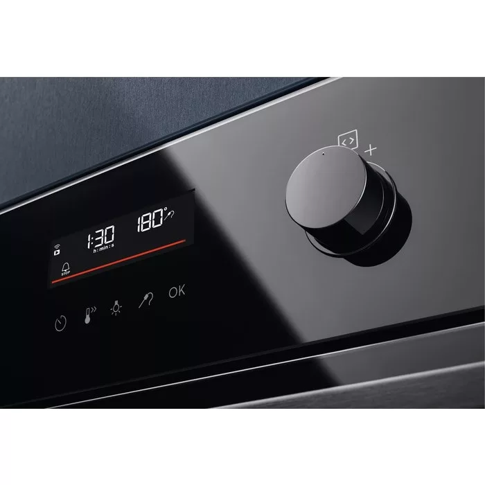 • Elektronika funkciói: pirolitika (3 ciklus), 45 variety of pre-set cooking programmes 'Assist', hangjelzés, Alarm/error tones, applikáció vezérlés, auto kikapcsolás (csak sütő), állítható jelzőhang, gyerekzár, sütővilágítás (ki-bekapcsolható), valós hőmérséklet kijelzés, maradékhő kijelzés, szervizkód, tisztítás figyelmeztető, okos panel, programozott sütés, programozott sütés, Count up timer, Delayed start (Time delay), demo mód, állítható kijlező fényerő, világítás kapcsoló, elektronikus hőmérséklet szabályozó, elektronikus ajtózár, választható gyors felfűtés, húshőmérő, húshőmérő auto kikapcsolással, húshőmérő hőmérséklet kijelzéssel, Food sensor end action adjustable, funkciózár, Key tones menu with deactivation, Menu connected, percszámláló, hőmérséklet ajánlás, óra (napi idő)