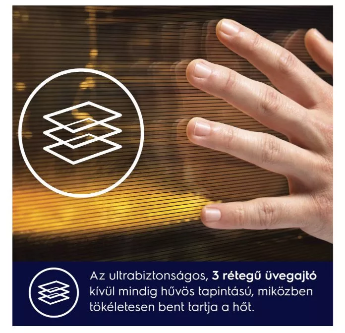 99 féle előre programozott sütőprogram, 3 sütési szint, érintőkijelző