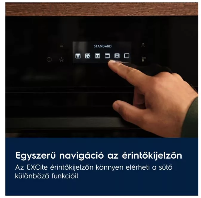 Az intuitív EXCite érintőképernyős TFT-kijelző hozzáférést biztosít a sütő különféle funkcióihoz. Közvetlen visszajelzéseket ad, így mindig az Ön kezében van a teljes irányítás.