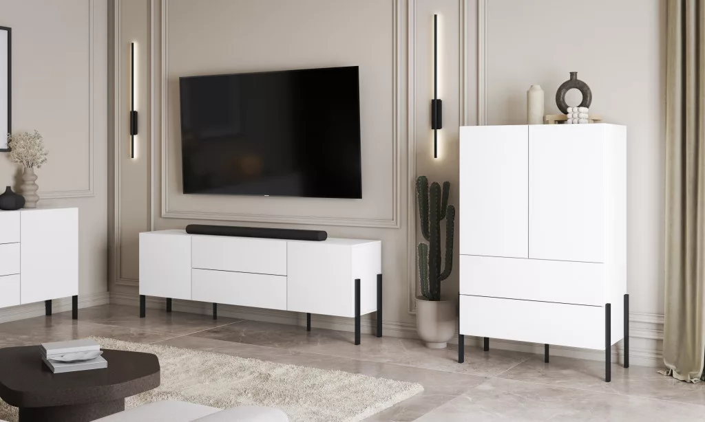 A karcsú, fekete lábak modern, légies megjelenést kölcsönöznek a komódnak, és a takarítást is egyszerűbbé teszik alatta. A stabil szerkezet és a minőségi vasalatok hosszú távon is megbízható használatot biztosítanak.