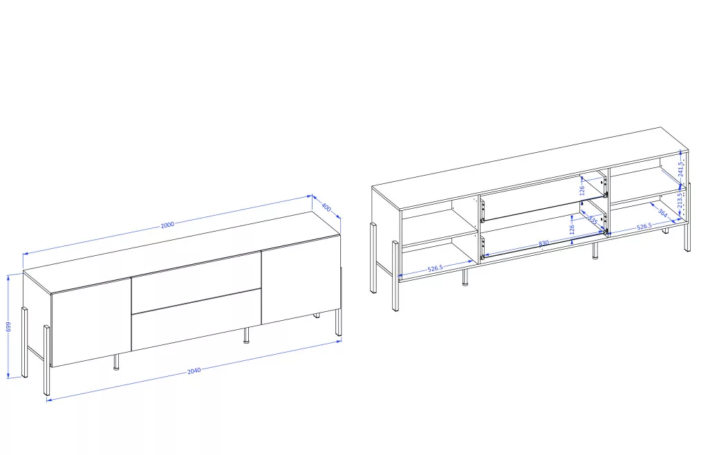 A komód belső kialakítása kifejezetten praktikus: az ajtós szekrényrészek polcos elrendezéssel segítik a nagyobb tárgyak, textilek vagy edények rendszerezett tárolását, míg a középen elhelyezett fiókok ideálisak kisebb kiegészítők, dokumentumok vagy mindennapi használati tárgyak számára. A jól átlátható belső tér megkönnyíti a rend fenntartását.