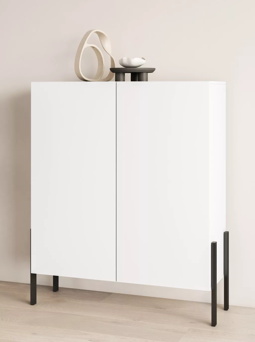 A karcsú, fekete lábak modern, légies megjelenést kölcsönöznek a bútornak, emellett megkönnyítik a takarítást is alatta. A stabil szerkezet és a minőségi vasalatok hosszú távon is megbízható, kényelmes használatot biztosítanak.