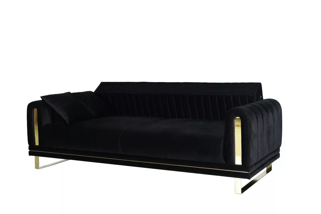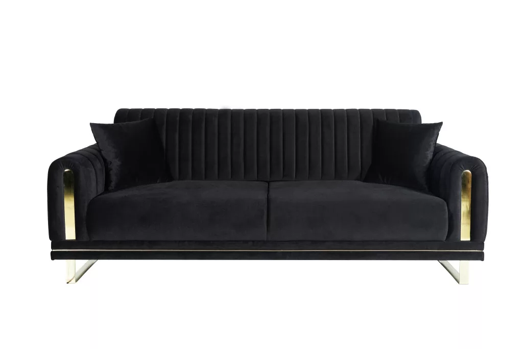 A Nepal kanapé nemcsak ülőbútor – hanem egy karakteres stílusnyilatkozat. Méltóságteljes fekete kárpitozása, markáns aranyszínű díszítőelemei és kifinomult vonalvezetése az elegancia legmagasabb szintjét képviselik.