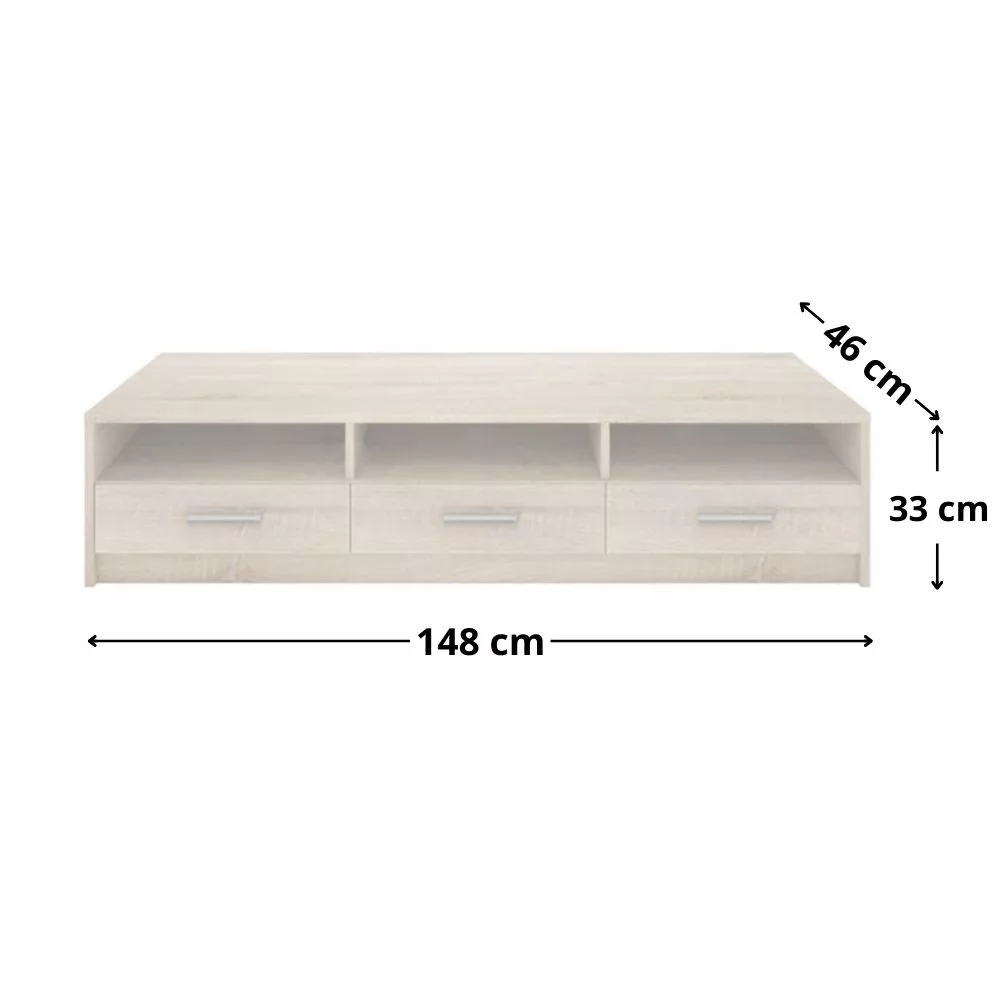 A Nepo tv szekrény tökéletesen kiegészíti a kollekció további darabjait. Többféle színben elérhető, laminált bútorlapból készült. A három fiók és egy nyitott polcok tökéletes kombinációt alkotnak.