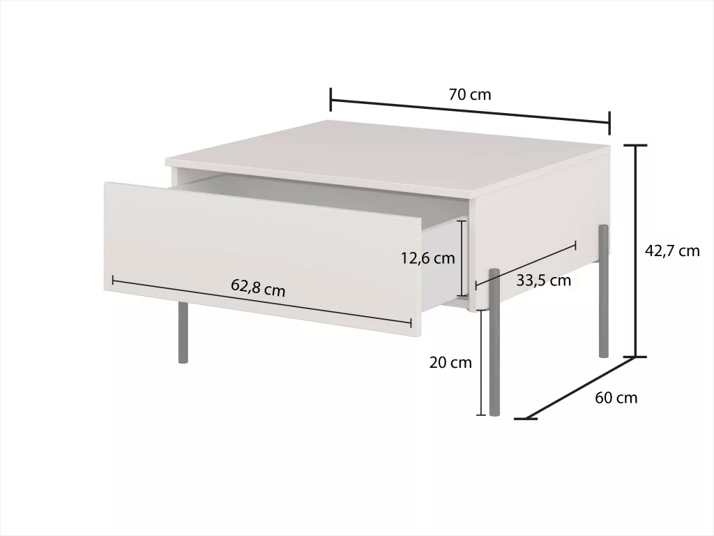 Masszív kialakításának és átgondolt méretének (70 x 43 x 60 cm) köszönhetően a dohányzóasztal kis- és nagyobb terekben egyaránt jól elhelyezhető. Ideális választás mindazok számára, akik modern, esztétikus és praktikus bútort keresnek otthonukba.
