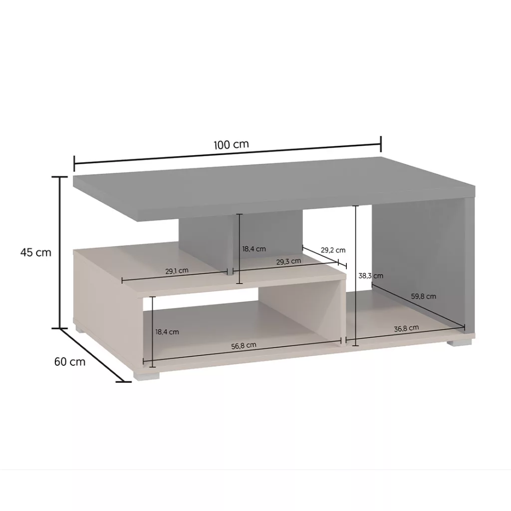 Ez a modern dohányzóasztal különleges, lépcsőzetes kialakításával egyszerre praktikus és látványos eleme lehet a nappalinak. Letisztult formavilága és harmonikus színkombinációja könnyedén illeszkedik a kortárs enteriőrökbe, miközben egyedi megjelenésével karaktert ad a térnek.