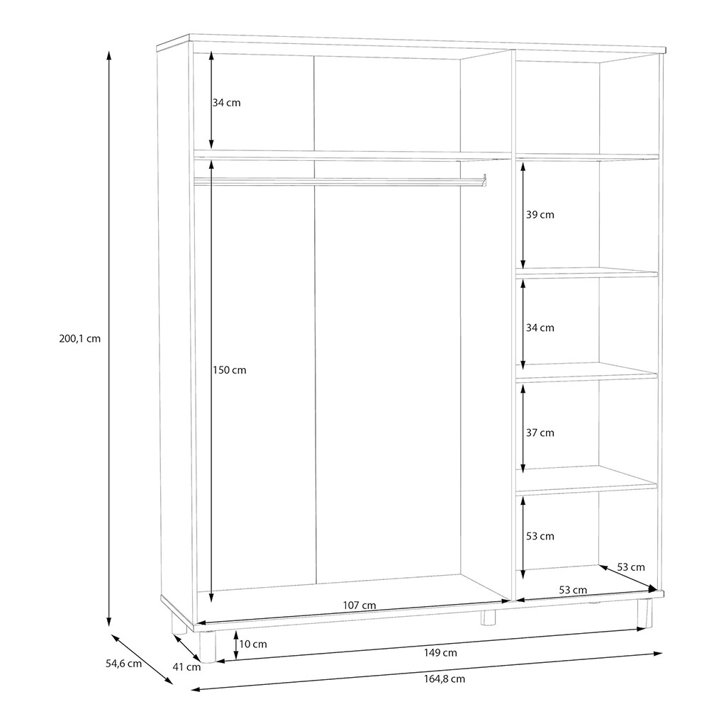 54,6 x 164,8 x 201,1 cm