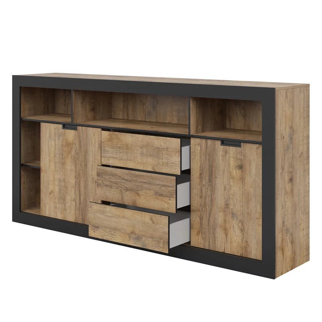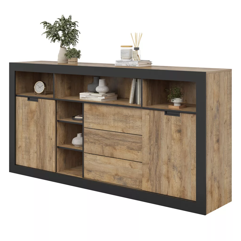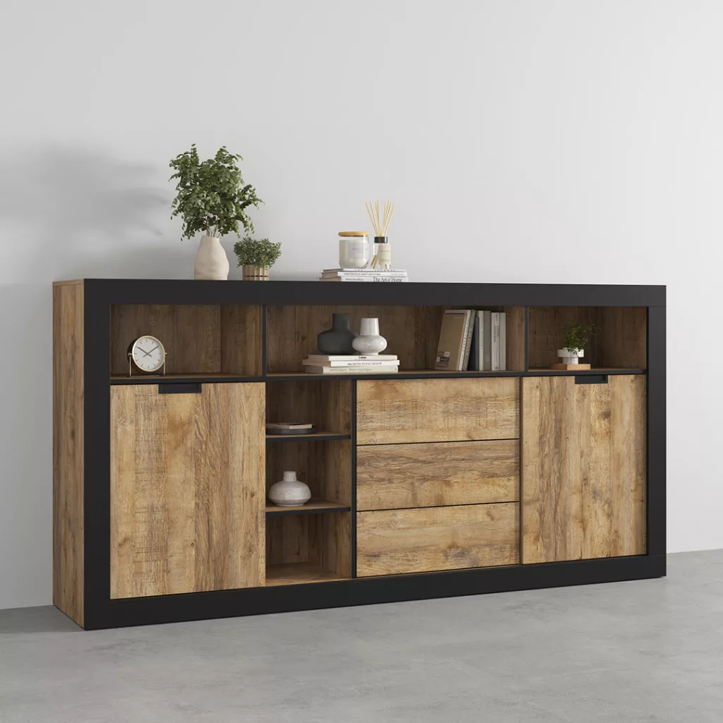 Tudor 2 ajtós, 3 fiókos tálalószekrény (24WSNZ43) - szamdal tölgy/matt fekete
