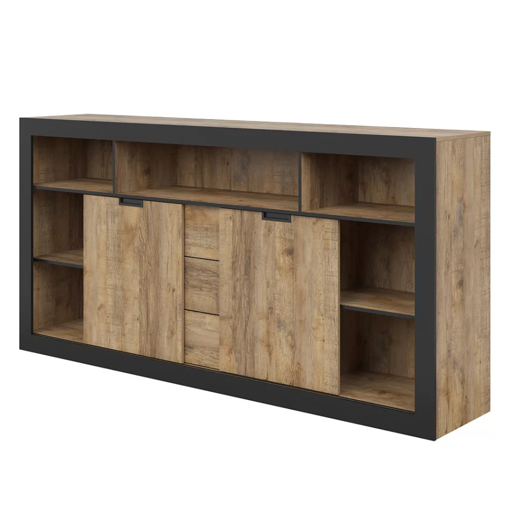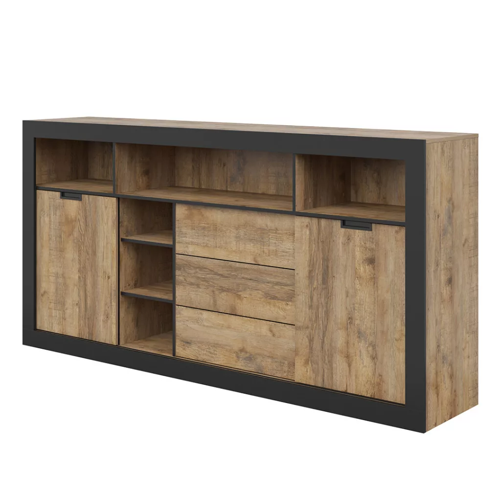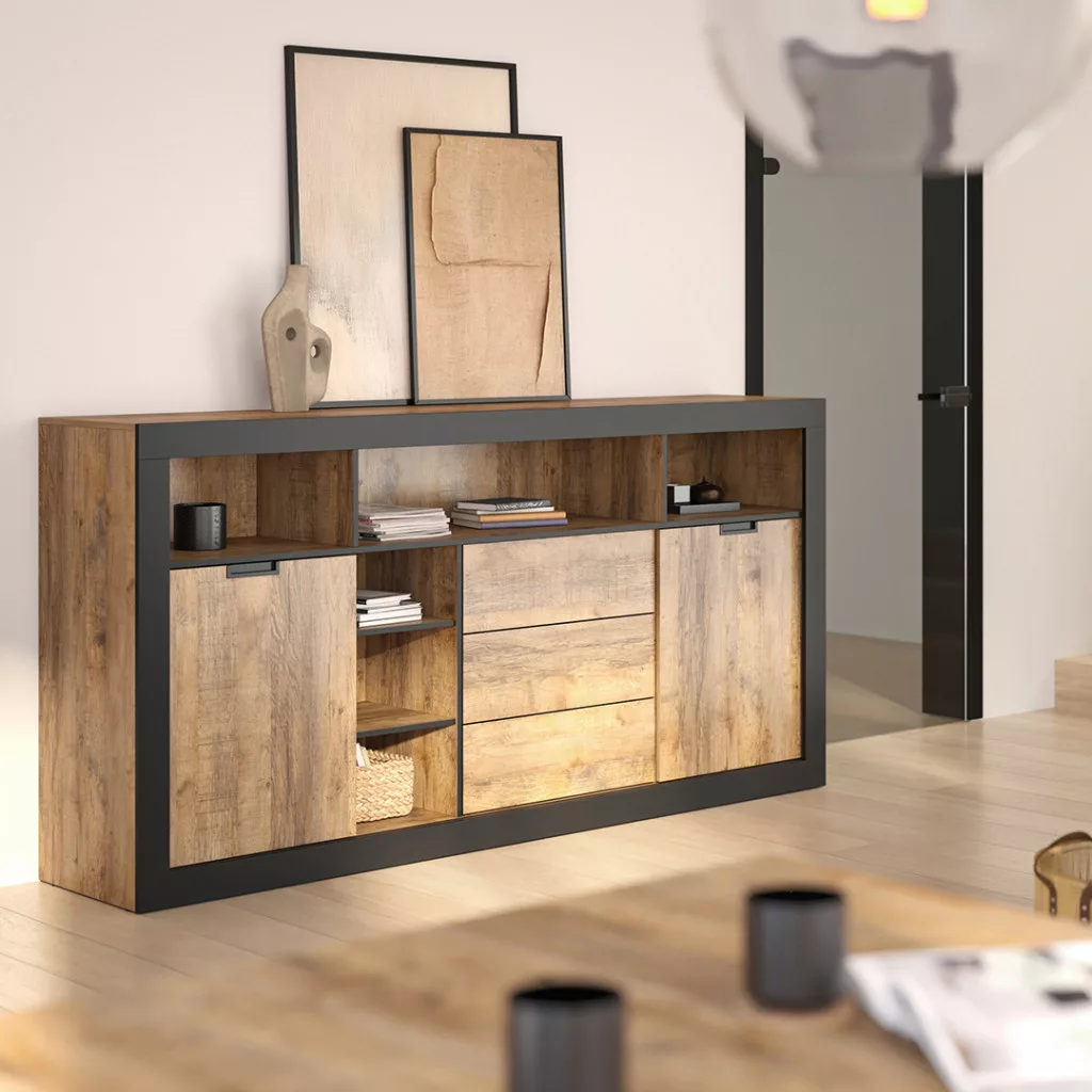 Tudor 2 ajtós, 3 fiókos tálalószekrény (24WSNZ43) - szamdal tölgy/matt fekete