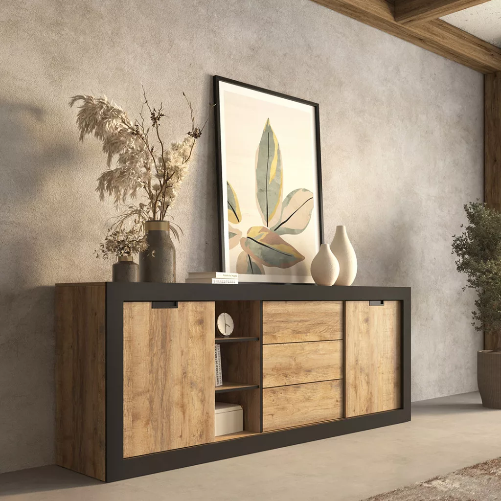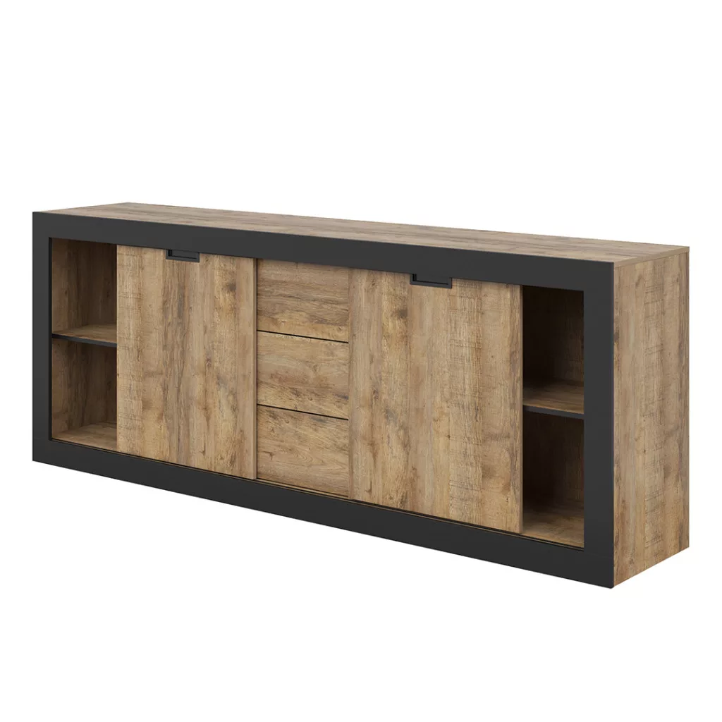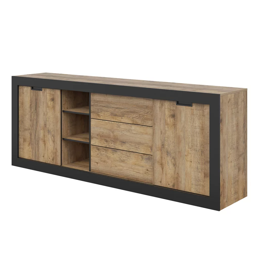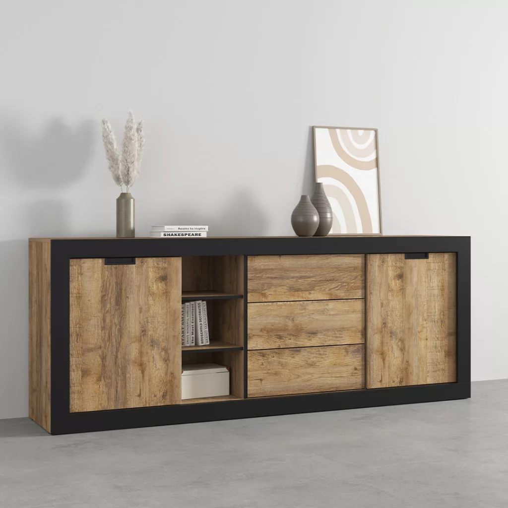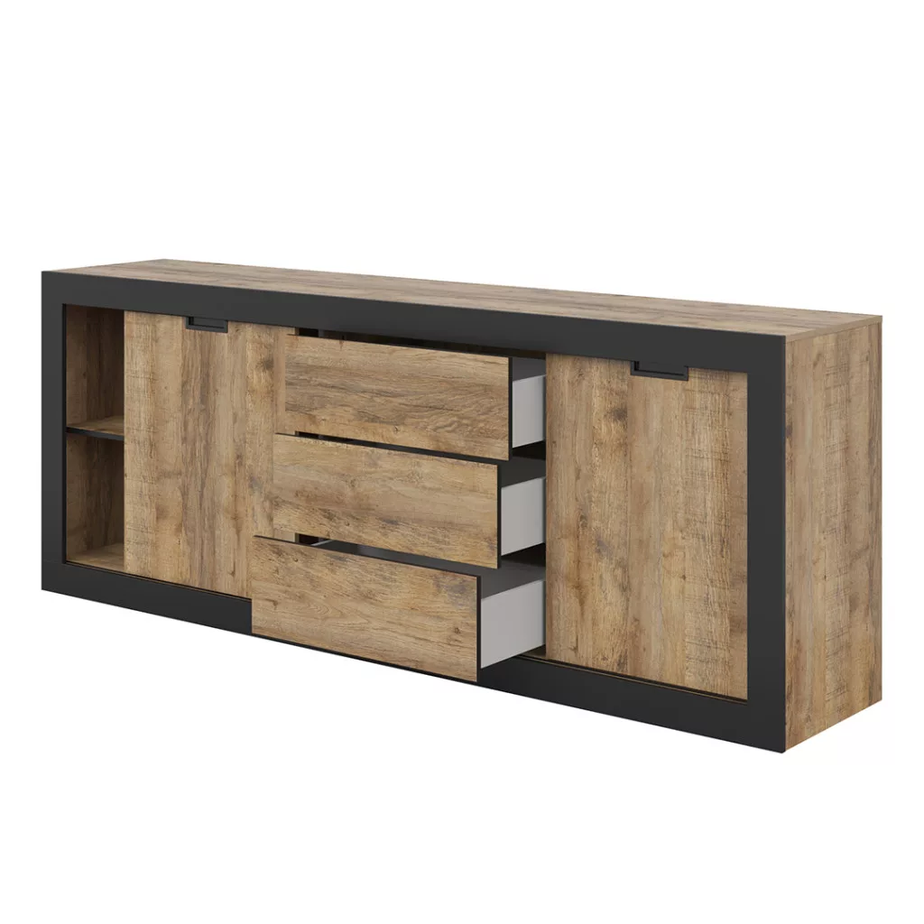 Tudor két ajtós, három fiókos tálalószekrény (24WSNZ25) - szamdal tölgy/matt fekete