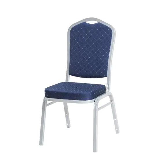 A stílusos Verona bankett szék elegáns, világos sötétkék kárpitozással, ezüst mintával és merészebb ezüst díszítéssel rendelkezik. Az ezüst keret tökéletesen kiegészíti ezt a gyönyörű kárpitot. E nemes színek kombinációja olyan széket hoz létre, amely feldob bármilyen teret, és sikkes, elegáns megjelenést kölcsönöz neki.