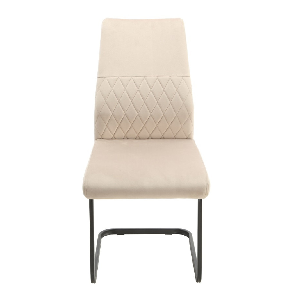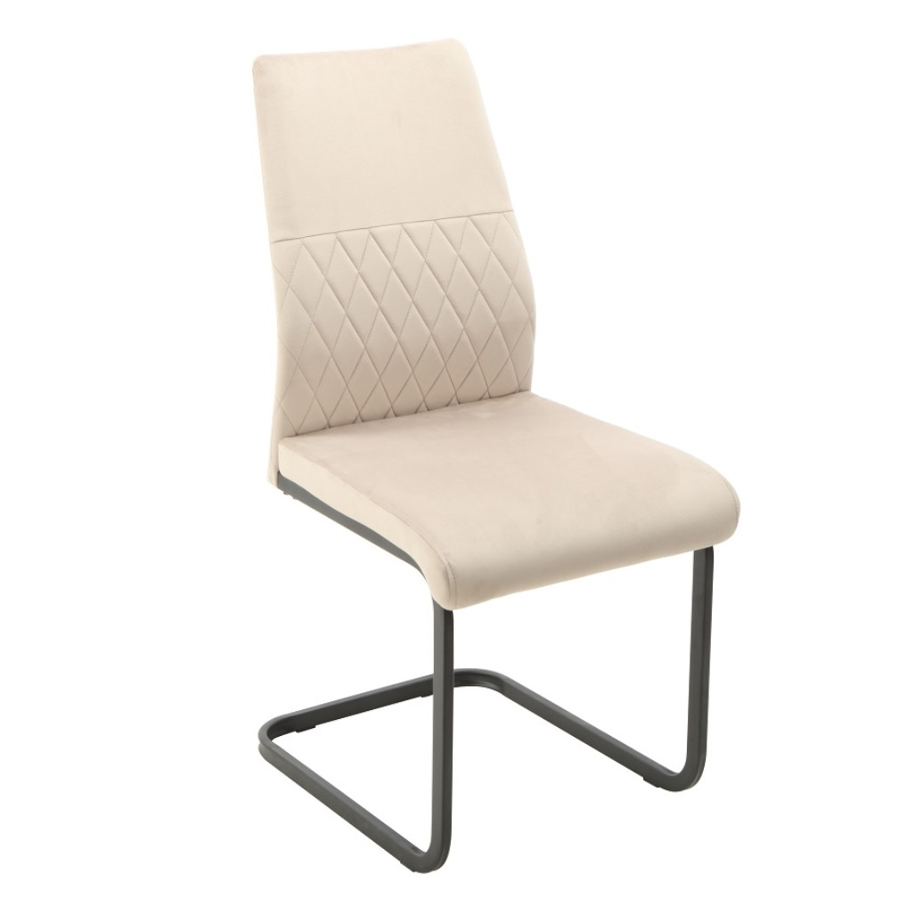 Ízléses és strapabíró étkezőszék bársonyhatású szövetkárpitozással. Háttámlájának steppelése teszi igazán különlegessé. Stabil, fekete, porszórt acéllábakon áll.