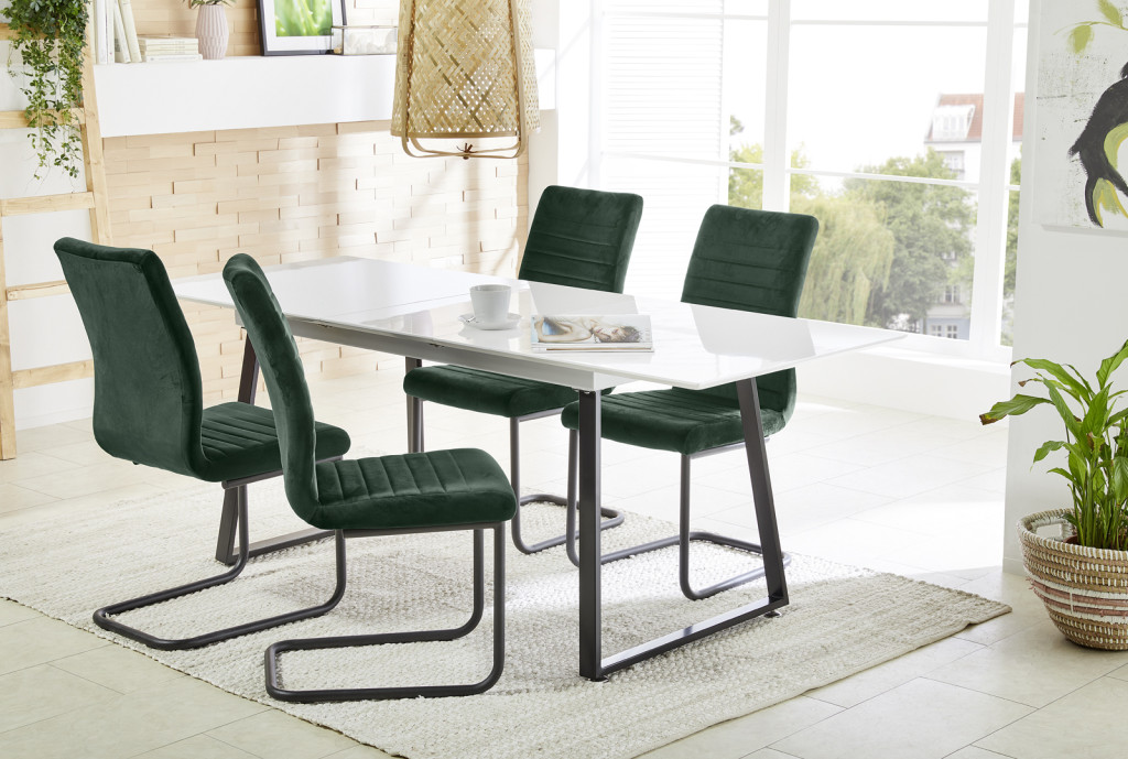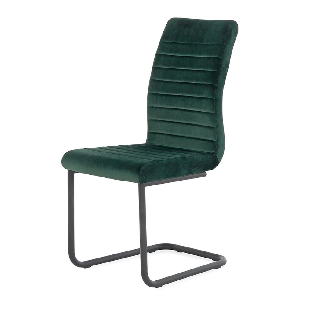 Masszív, szánkótalpas, bársony étkezőszék. Három színben rendelhető: rózsaszín, sötétzöld, fekete.