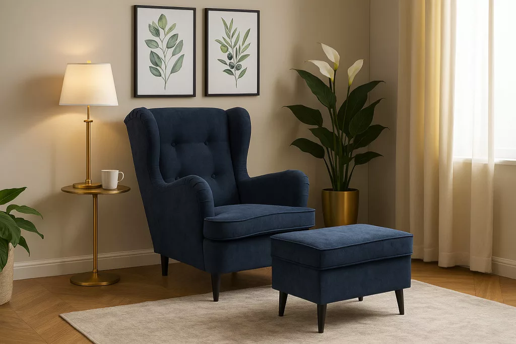 Rendkívül masszív és kényelmes, klasszikus fülesfotel szövetkárpitozással. A pihentető üléskomfortot a hullámrugók és az azon lévő habanyag biztosítja. Pácolt tömörfa lábakon áll. A megegyező Carry lábtartót kiegészítőként ajánljuk hozzá.