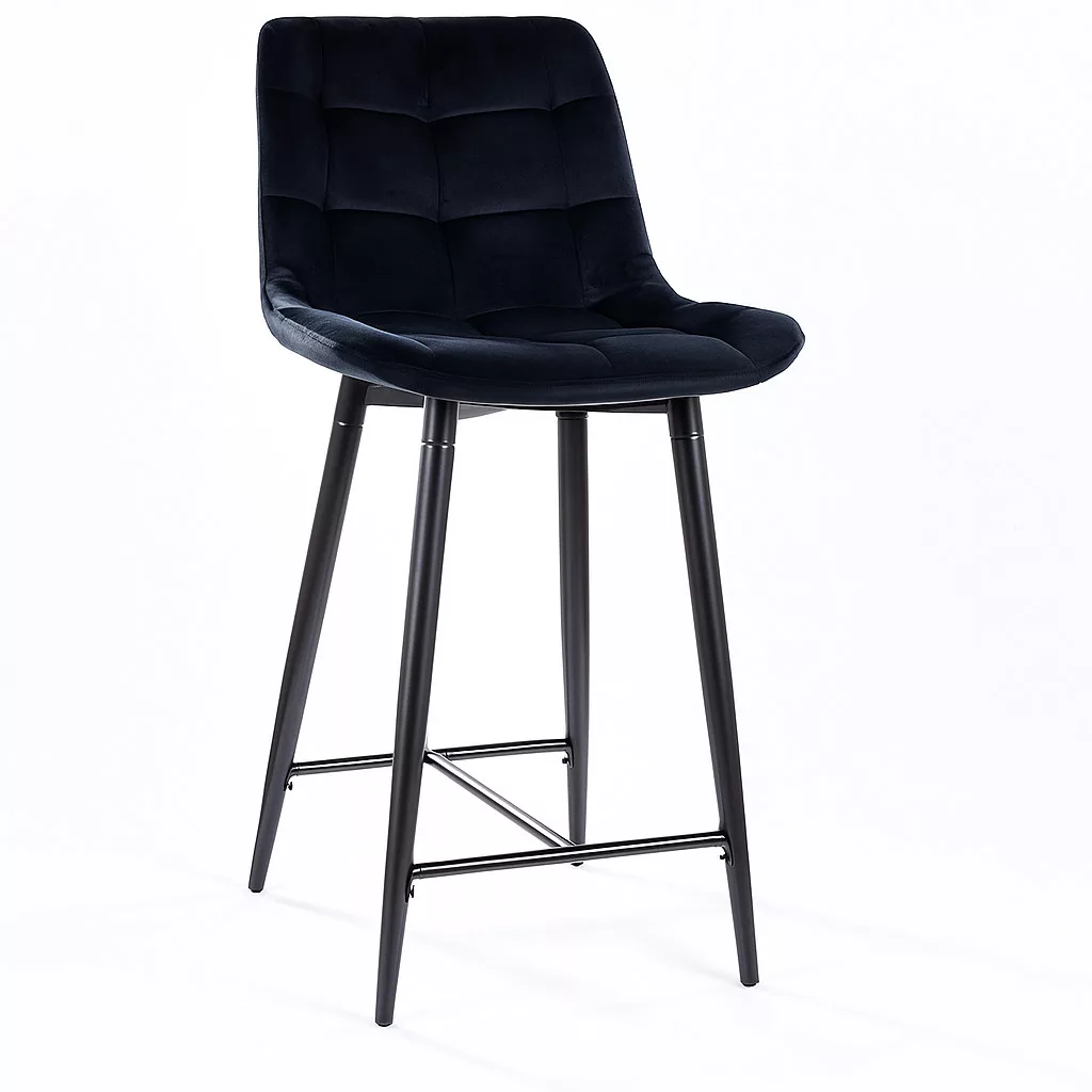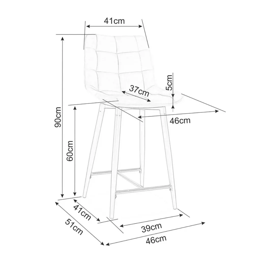 Stílusosan elegáns, az átlagnál alacsonyabb kialakítású bárszék, bársonyhatású szövetkárpitozással, többféle színben. Fekete fémlábain lábtartó kapott helyet.