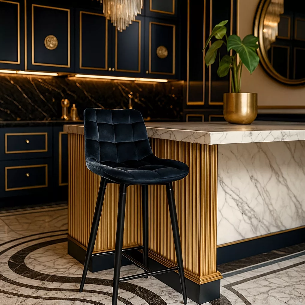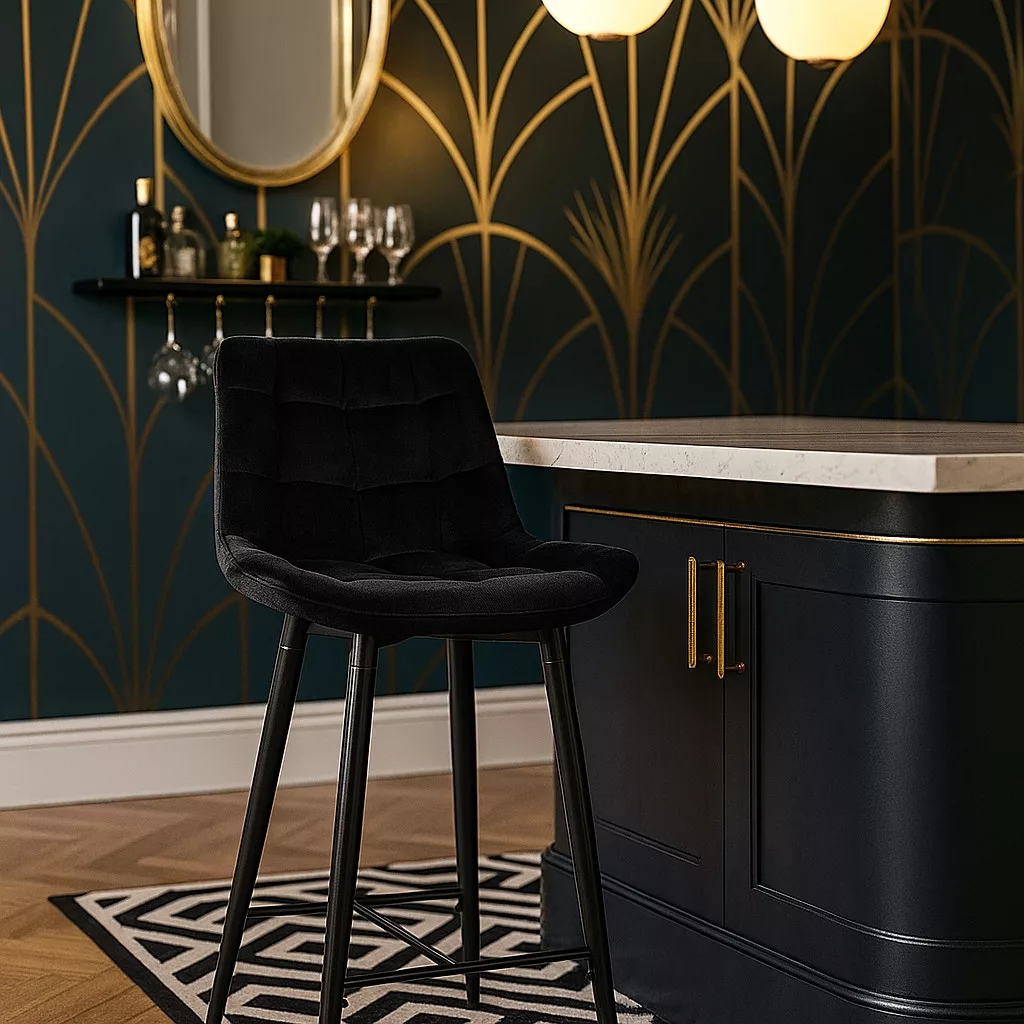 (Kínálatunkban megtalálható a hasonló Chic bárszék magasabb, H-1 változata, valamint a Chic étkezőszék sokféle variációban: arany lábakkal / króm lábakkal / vízlepergetős bársonyhatású szövetkárpittal / kordbársony szövettel)