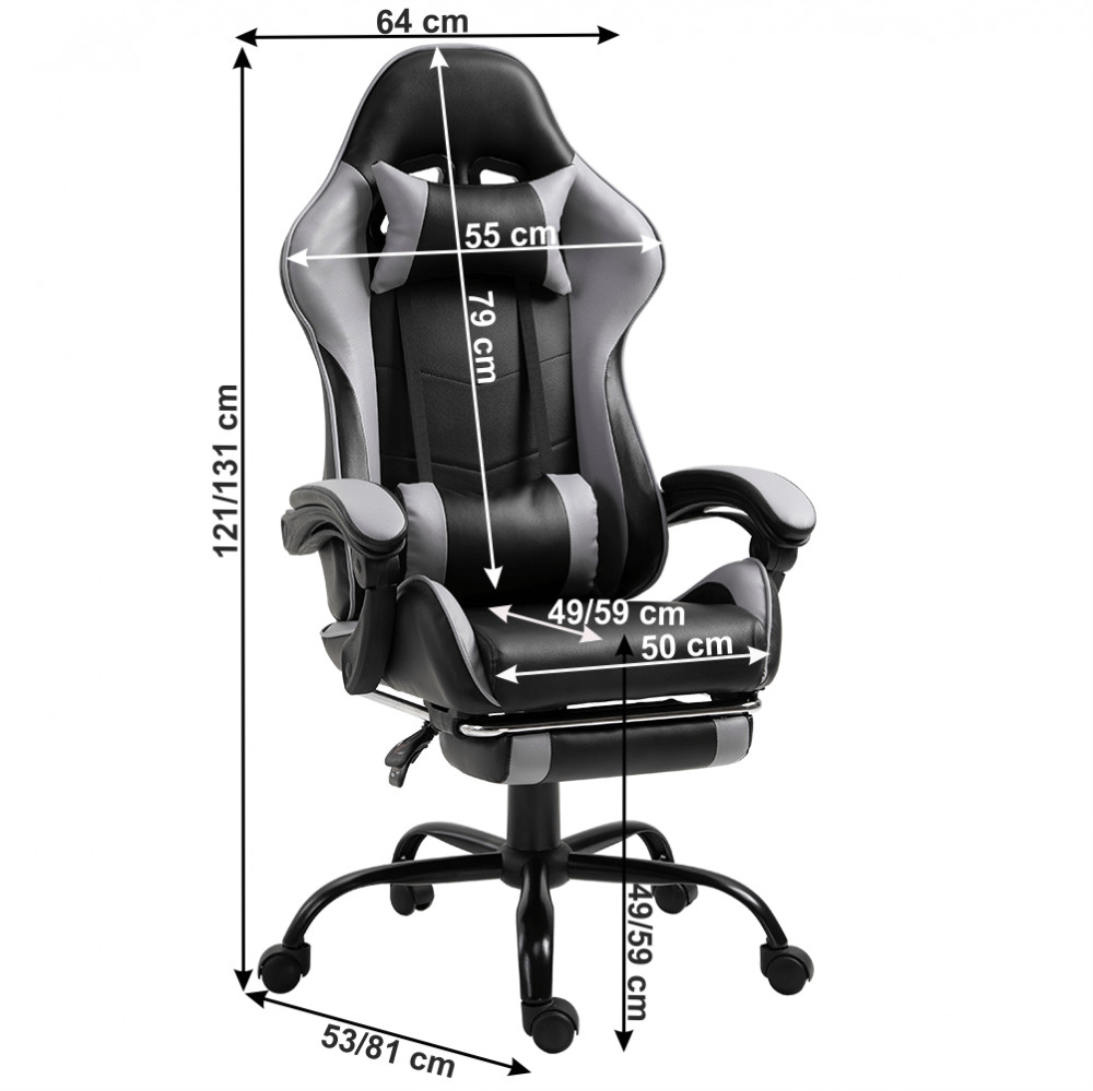 A TARUN egy egyedi gamer szék, amelyet imádni fog minden játékos. Számos funkciót kínál, mint az állítható háttámla, kinyomható lábtartó, állítható ülésmagasság, fejtámla, párnák a hát tájékán. A nagyobb komfort érdekében hinta mechanizmussal rendelkezik. Műanyag támlái ekobőrrel kárpitozottak. A gamerfotel ekobőrrel kárpitozott szürke és fekete színkombinációban. Stabilitását fémszerkezete biztosítja, amelyre gumírozott kerekek vannak rögzítve. Ideálisak a fa és hajópadlóra is. Ha hosszú órákat tölt el a számítógép mögött, a TARUN szék ideális társa lesz.