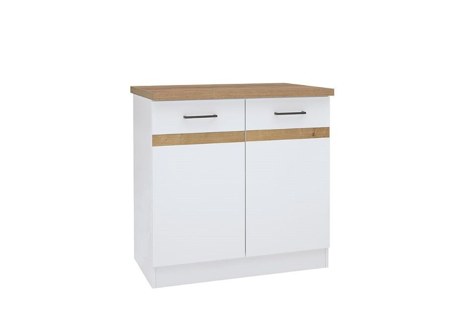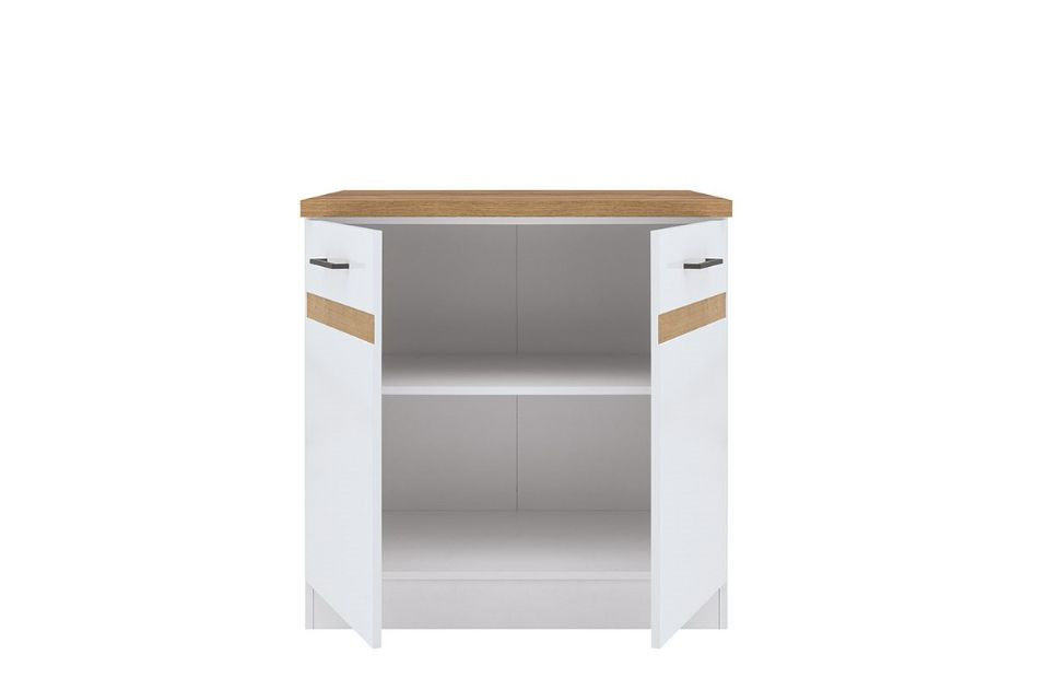 JUNONA LINE - D2D/80/82 - Kétajtós alsószekrény elem (fényes fehér/aranytölgy)