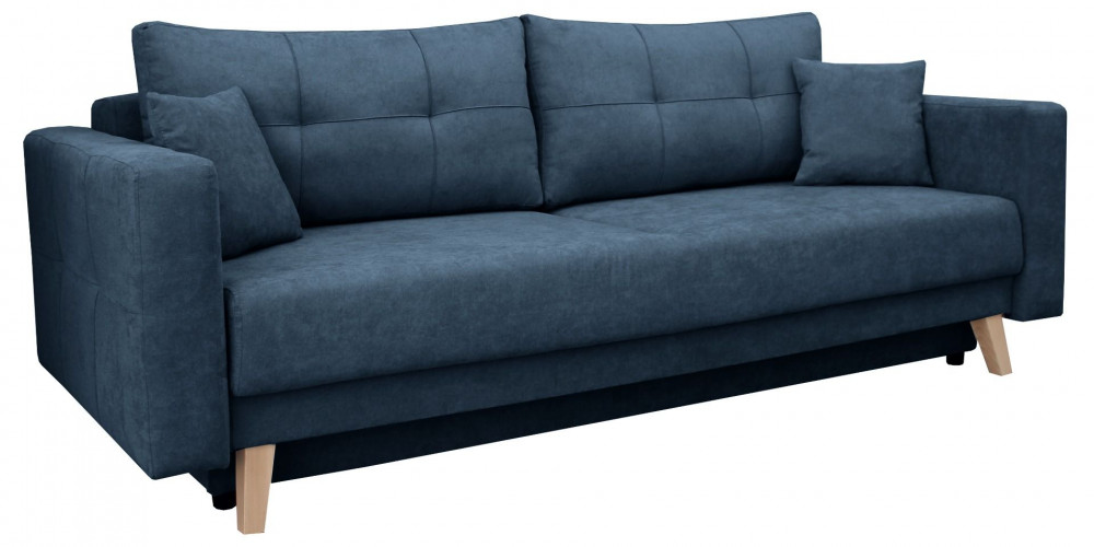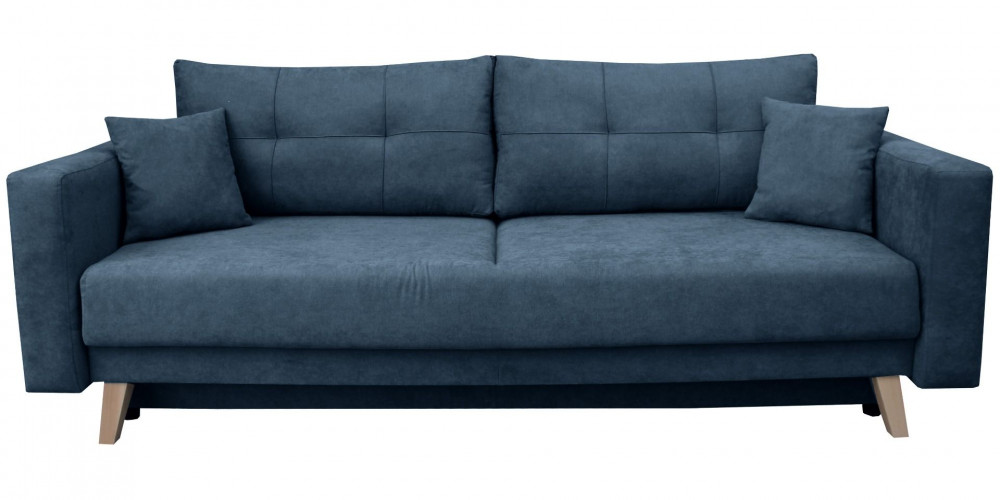 Kényelmes, kétszemélyes ággyá alakítható kanapé, teljes méretű ágyneműtartóval. A kanapé hullámrugós és magas rugalmasságú hab fekvőfelülete egészségesebb alátámasztást biztosít, ráadásul még tartósabb is, így mindennapi alváshoz különösen ajánlott. Automata kiemelős mechanizmussal szerelt, így különösen egyszerű a nyitása. Natúr bükk lábakkal. Összecsukva klasszikus kanapé, a párnákat levéve egyszemélyes heverő, kinyitva pedig franciaágy kényelmét kapjátok mindketten.