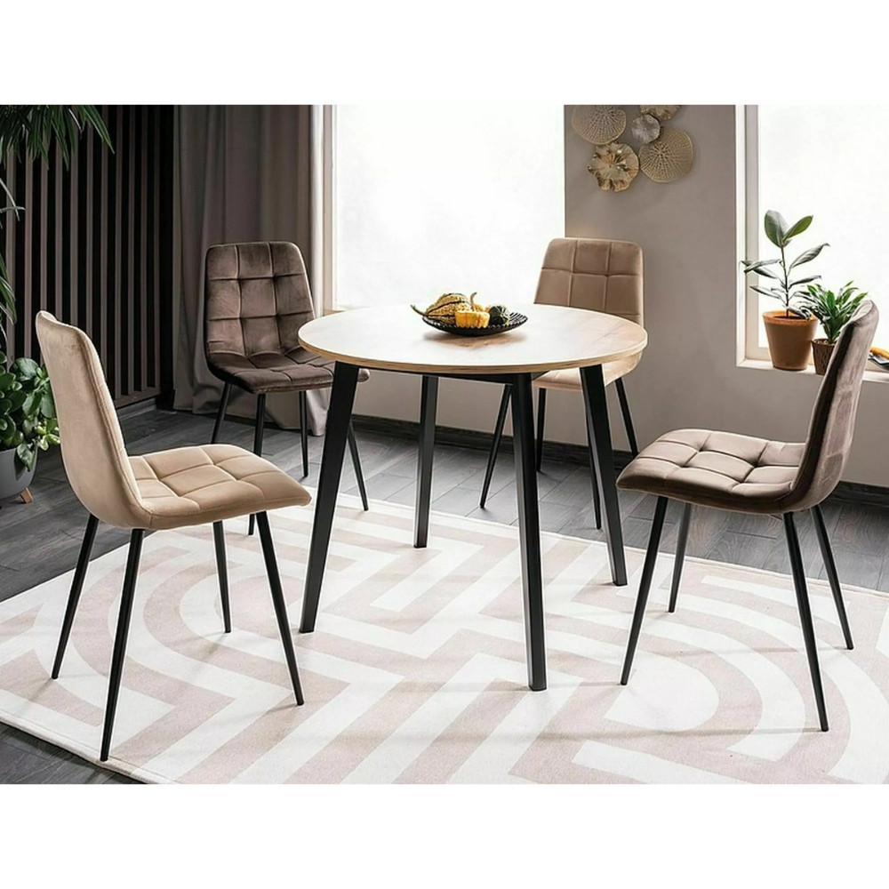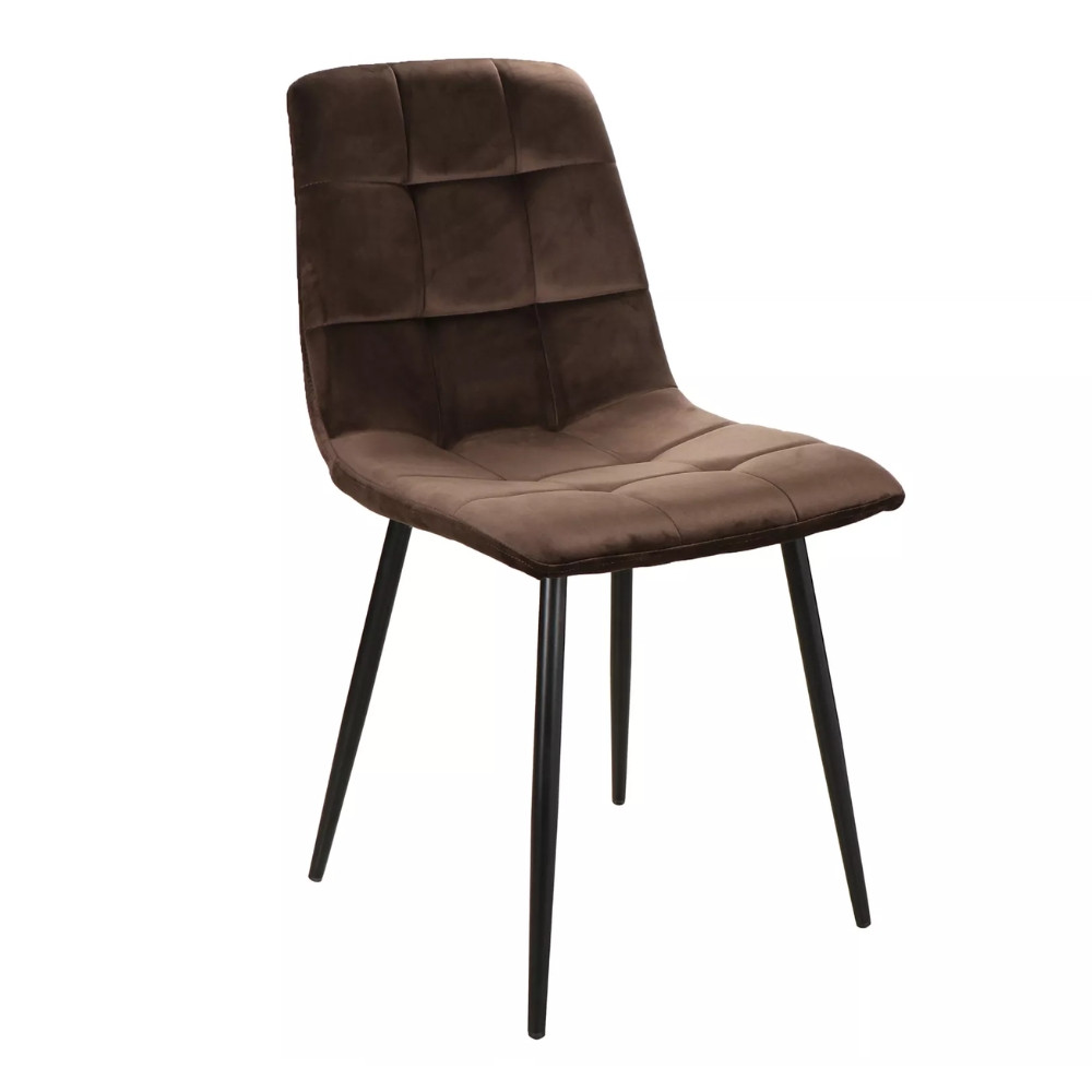 Modern, stílusos étkezőszék bársonyhatású szövetkárpitozással. Nagy színválasztékban rendelhető, így biztosan megtalálja az Önnek megfelelő árnyalatot. Stabil, fekete fémlábakon áll.