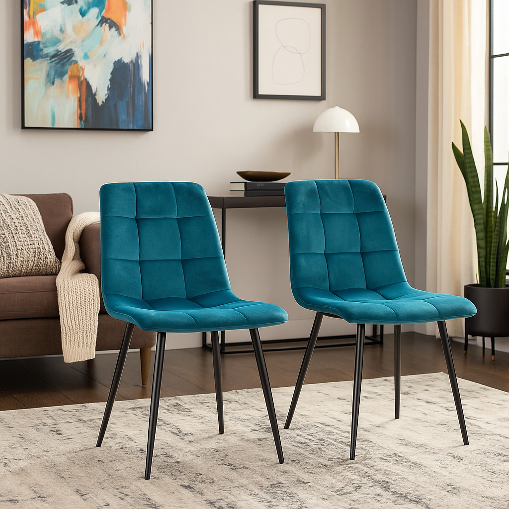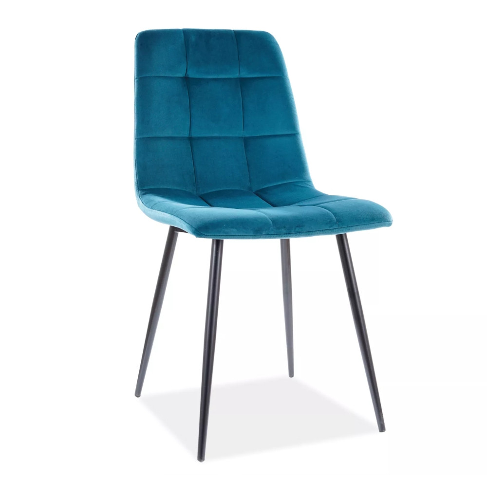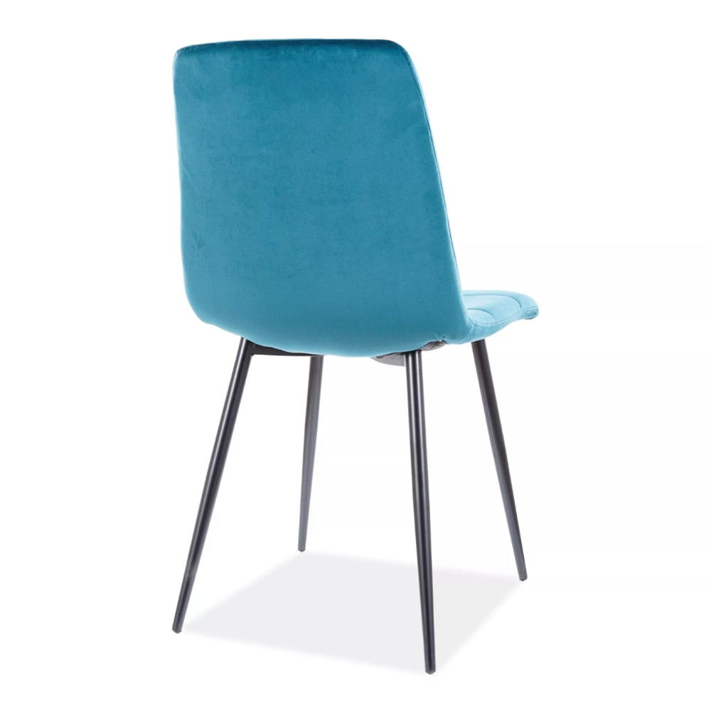 Modern, stílusos étkezőszék bársonyhatású szövetkárpitozással. Nagy színválasztékban rendelhető, így biztosan megtalálja az Önnek megfelelő árnyalatot. Stabil, fekete fémlábakon áll.