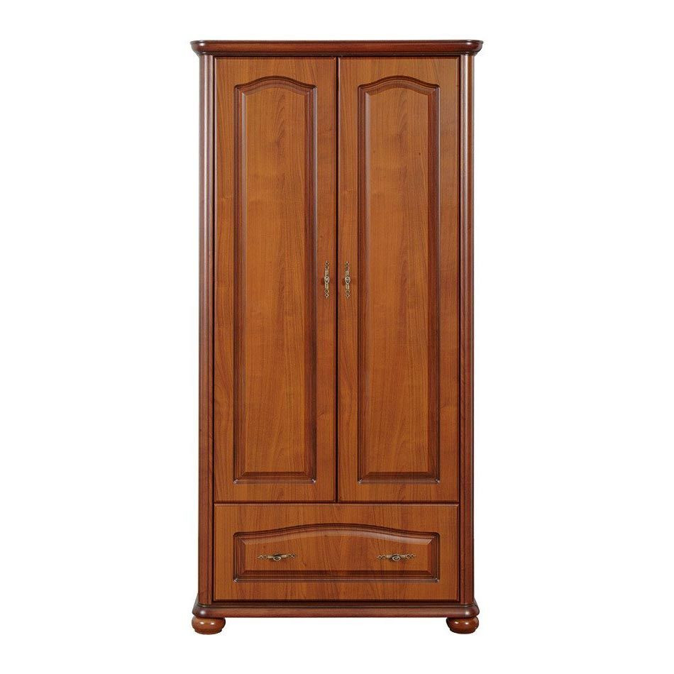 Időtálló formavilágú, kétajtós, egyfiókos ruhásszekrény. Belsejében egy vállfatartó sín található, alsó részében egy széles fiók kínál bőséges helyet a kisebb ruhadarabok számára. A gyönyörű tavaszi cseresznye árnyalat meleg, otthonos légkört ad az enteriőrnek. A barázdáltan faragott szegélyek, a gömbölyű lábak, illetve a szemet gyönyörködtető fogantyúk egyedi, rendkívül dekoratív megjelenést biztosítanak. Megnövelt kopásállóságú felületei, és magas minőségű zsanérjai hosszú élettartamot garantálnak. A bútorcsalád többi eleméért görgess le a Kapcsolódó termékek részhez.
