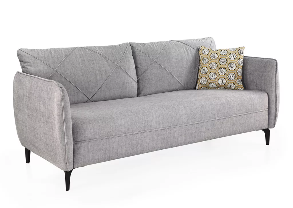 Stílusos 3 üléses kanapé tetszetős dekor varrással díszítve. A minőségi hab, a rugós alátámasztással gondoskodik a megfelelő ülés komfortról. Egy díszpárna tartozéka a bútornak. Hátulja valódi anyaggal borított, így bárhol elhelyezhető a lakásban. Anyaga velúr hatású.