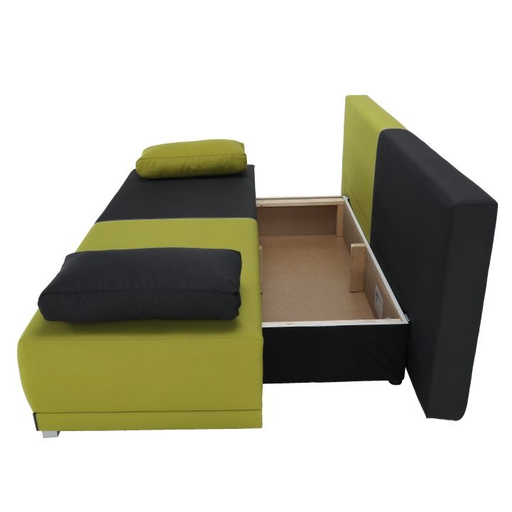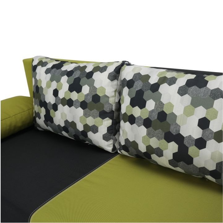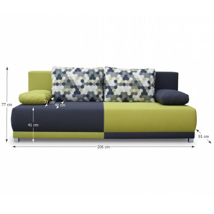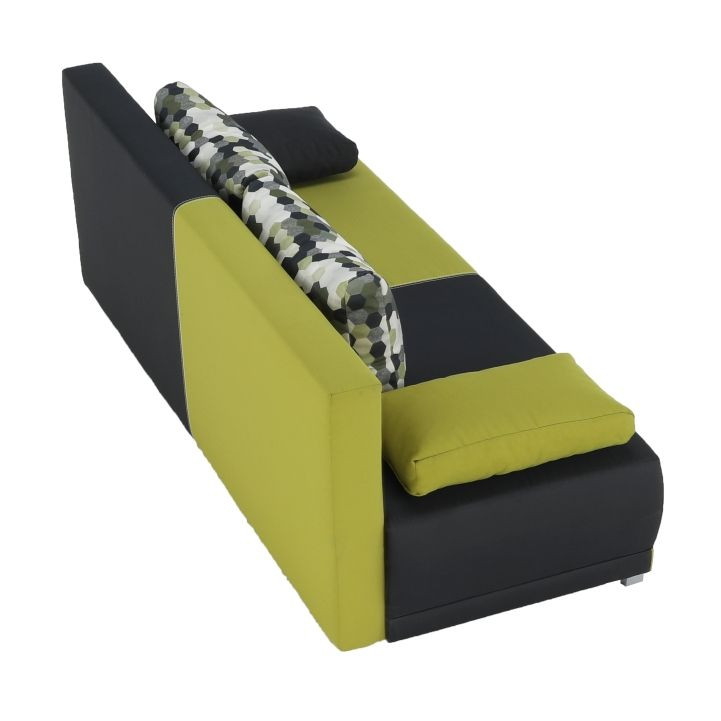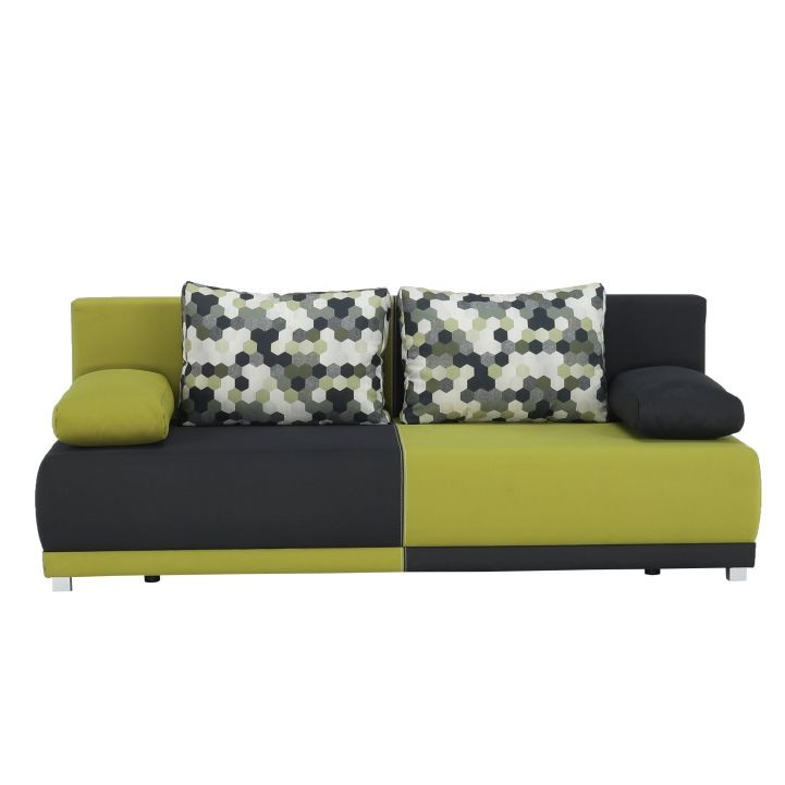 Töltsd meg élettel a nappalid! A modern megjelenésű Spiker kanapéágyat a színek látványos kombinálása teszi különlegessé, frissé, fiatalossá. A billenő háttámla könnyű, gyors ágyazhatóságot tesz lehetővé. Az ülőfelület és a háttámla egyenletes felületet kínál a pihentető alváshoz. Tágas ágyneműtartóval rendelkezik. Kárpitozott hátoldalával térben elhelyezve is esztétikus. A kanapéhoz 2 nagy hátpárna és 2 karpárna tartozik.