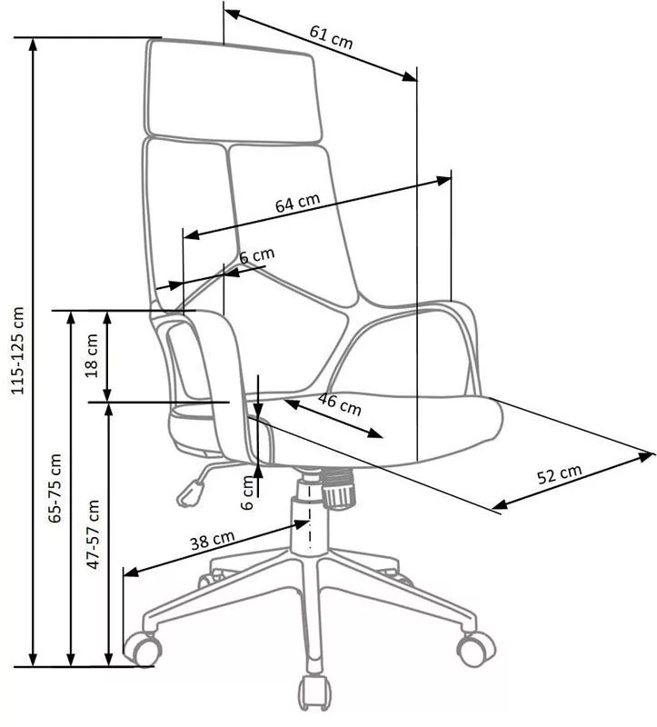 Méretek (Szé-Ma-Mé): 64 x 115-125 x 61 cm