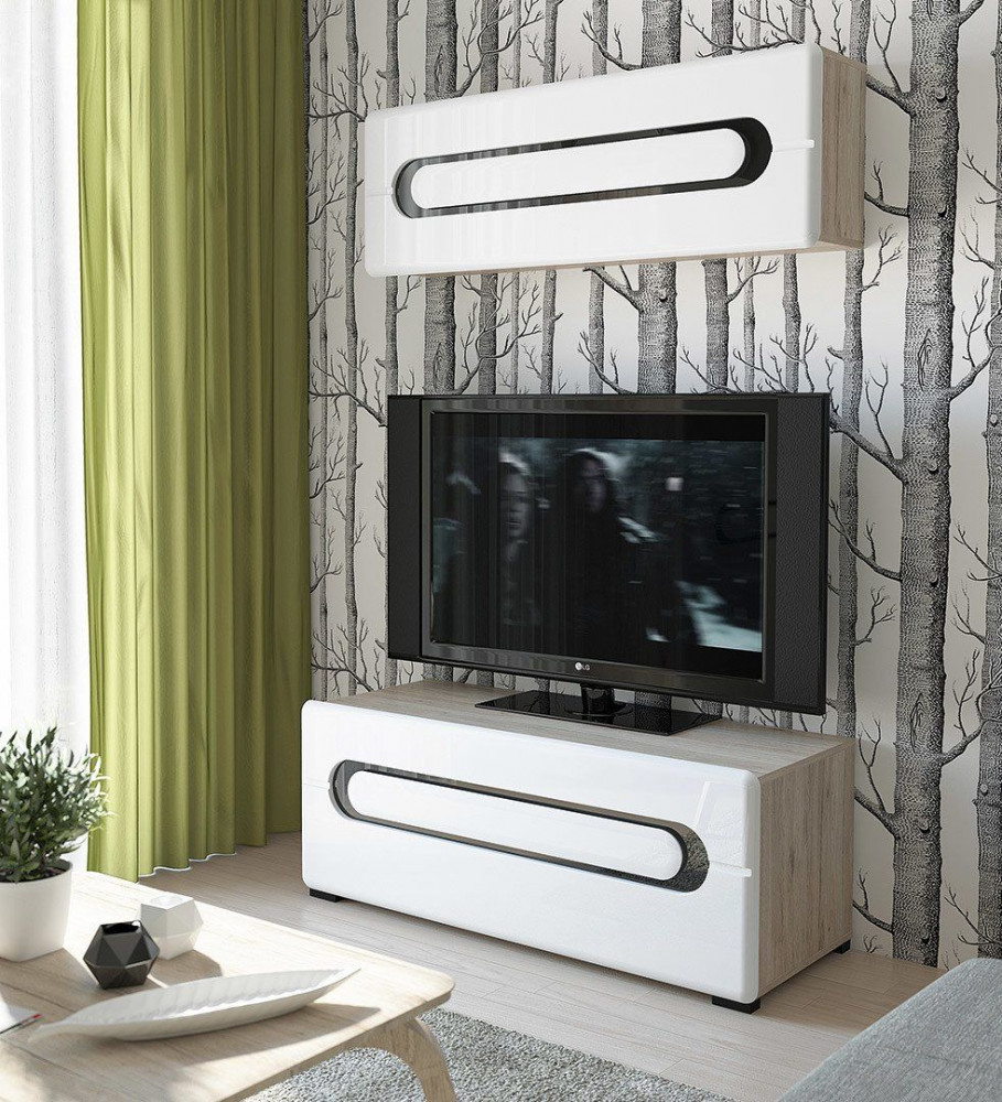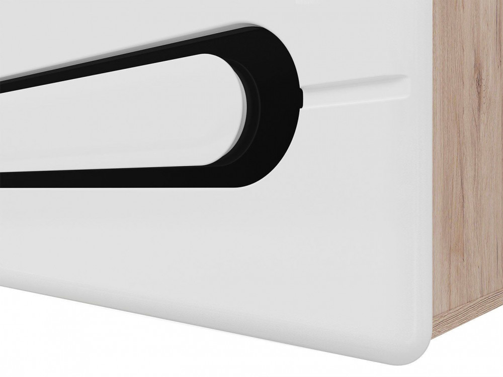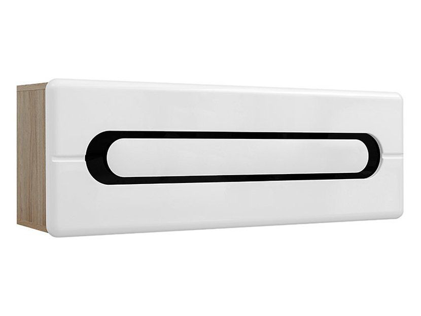 A modern Byron bútor család részét képző zárt fali polc. A fa színének és a fényes fehérnek az univerzális, mégis modernista kombinációja lehetővé teszi, hogy rendhagyó hangulatú belső teret rendezzen be. A fekete edzett üvegnél található mélyesztett kialakítás megkönnyíti az ajtók kinyitását a kalsszikus fogantyúkat helyettesítve.