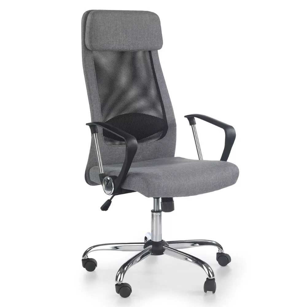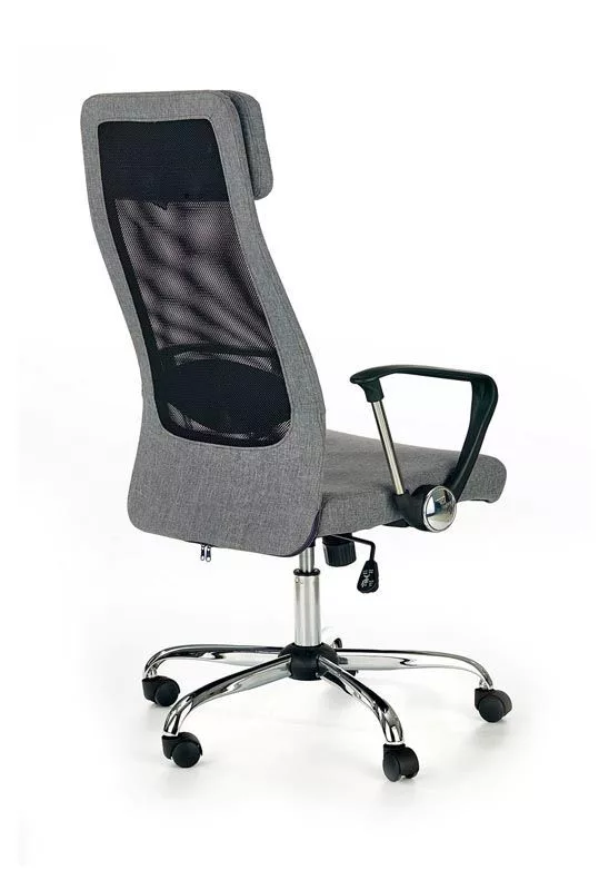 Kényelmes & modern. Állítható magasságú forgószék nem csak irodába. Szürke szövetkárpitozás és fekete, hálós háttámla. Kerekei gumibevonatúak. TILT mechanizmussal szerelt hintafunkció és fejtámla gondoskodik az extra kényelemről.